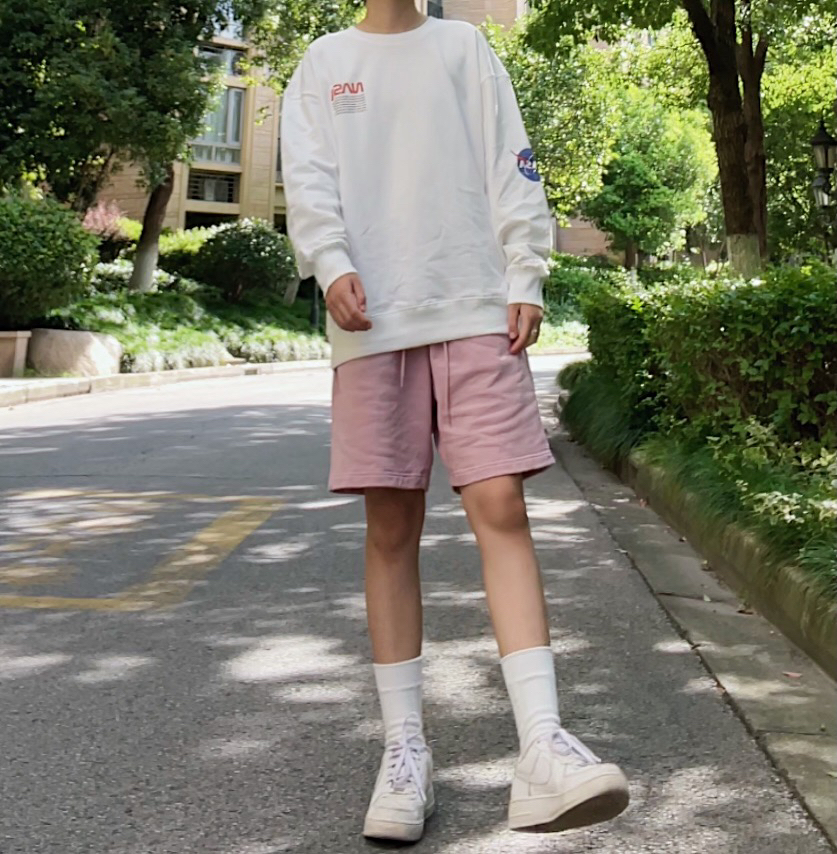 ✨今日穿搭 白色卫衣(YCHA) 粉色短裤(BIGCHESE) 空军一号 袜子.包(BIGCHESE) ——————————————— ✨粉白搭配真的超级显白 超级适合假期出游穿搭 ——————————————— ✨OOTD 每日穿搭 简单干净的少年感穿搭 粉色系穿搭 白色卫衣穿搭 男友风穿搭 夏日燥起来