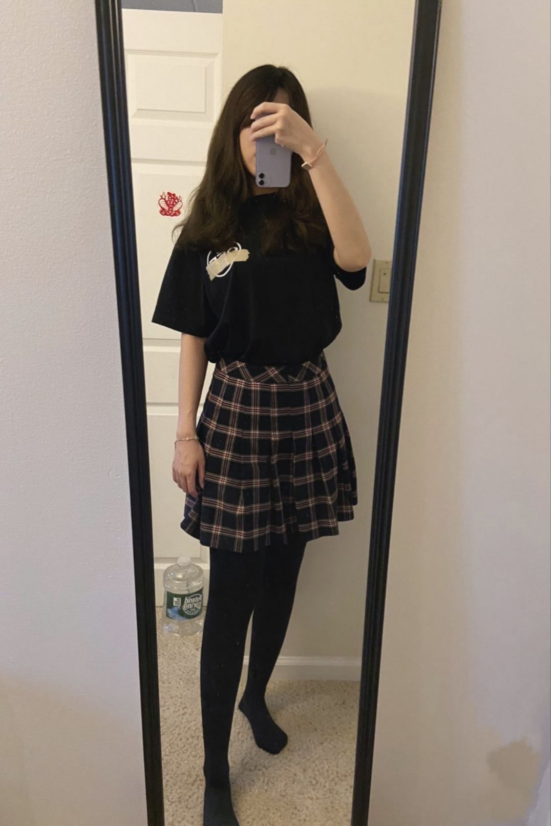 look 1 🖤🖤基础款黑色T恤,下搭高腰线经典格纹百褶裙,内搭一双黑色丝袜✨✨,乖巧甜美校园风满满哒~💗💗 look 2 OFF-WHITE潮牌🖤🖤黑色基础款T恤➕👖浅蓝色超短裤,外加一双厚底鞋,简单干净,时尚显腿长💖💖 look 3 整体风格简单随性,🐟上衣黑色图样白色T恤,👖下搭一条简单的牛仔萝卜裤,脚踩一双黑白aj 简简单单,百搭又耐看👍 look 4 OFF-WHITE基础黑色宽松...