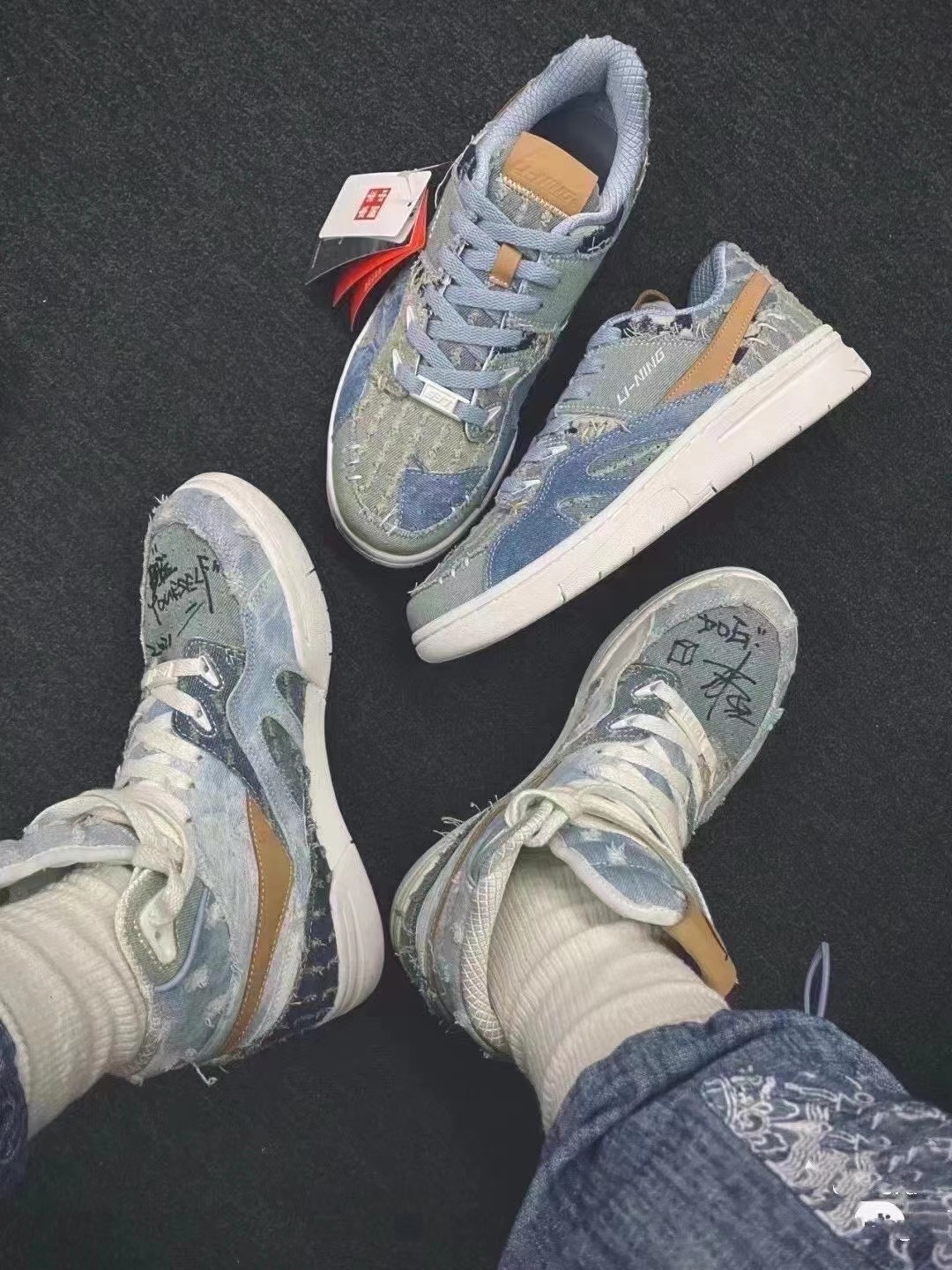 这个鞋得物还没有,都是实体和代理商拿的。来看一下,跟高帮的937没啥区别,低帮显得更稳一点。699的价格和空军一号有没有对比度呢?可能对比起来,还是空军更🔥一点。复古的937赋予新的生命力,这个牛仔丹宁配上牛皮的拼接效果,可能也会成为新潮流吧?#李宁