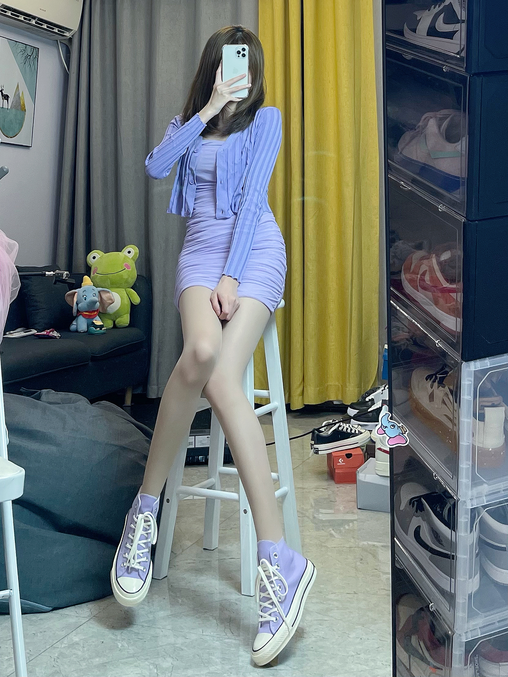 👗裙:不知名 这件连衣裙真的太少女了!!!无敌显瘦显身材 特别修身穿上它你就是最甜的辣妹 裙子很短穿上超级显腿长(要穿好打底裤)肩带是可调节的喔,亮眼真的适合秋天 👟鞋子:匡威converse1970s紫色 我很喜欢这个颜色的匡威哈哈,高频出现
