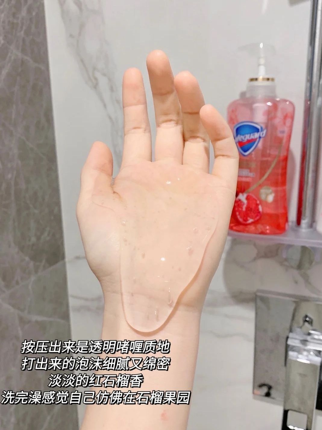 😧夏天出门整个人就像泡在汗里,一整天下来皮肤上堆积了好多汗液和污垢回家的第一件事情就是洗一个舒舒服服的热水澡,把一整天的疲惫和脏东西都清洗掉,今年夏天我的C位身体清洁好搭档就是✨舒肤佳红石榴排浊沐浴露啦~ 🎈质地和香味 晶莹剔透的嗜喱质地,洗澡的时候能轻松地搓出很多泡泡哦~清新石榴味,超好闻~像是大牌同款香,洗香香的泡泡浴让洗澡都更有仪式感了,每次洗澡我都要洗好久,完全沉醉在这个香味中,真的太上头...