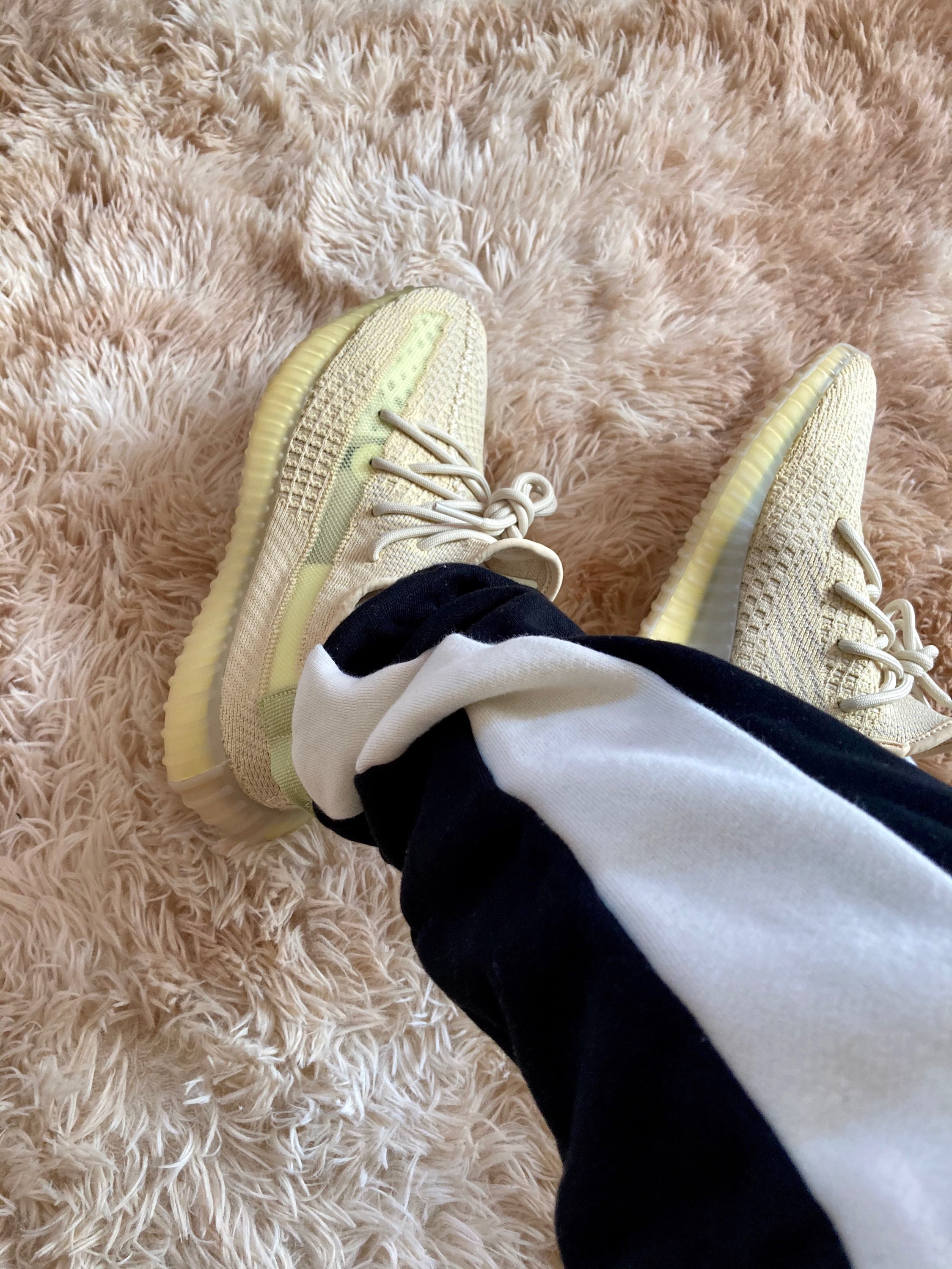 Yeezy Boost 350 V2 “Flax” 亚限 🌟上脚体验:偏小选比你正常码大半码,椰子的脚感都是很棒的! 🌟入手理由:这款亚限保留了后跟鞋提和侧特设计,原汁原味,鞋底和鞋面的的色调相呼应,配色很适合夏天!男码货量大,价格相当合适,香就完事了! 🌟入手渠道:阿迪App 🌟入手价格:1899 趁价格合适,喜欢的自穿党可以入手!