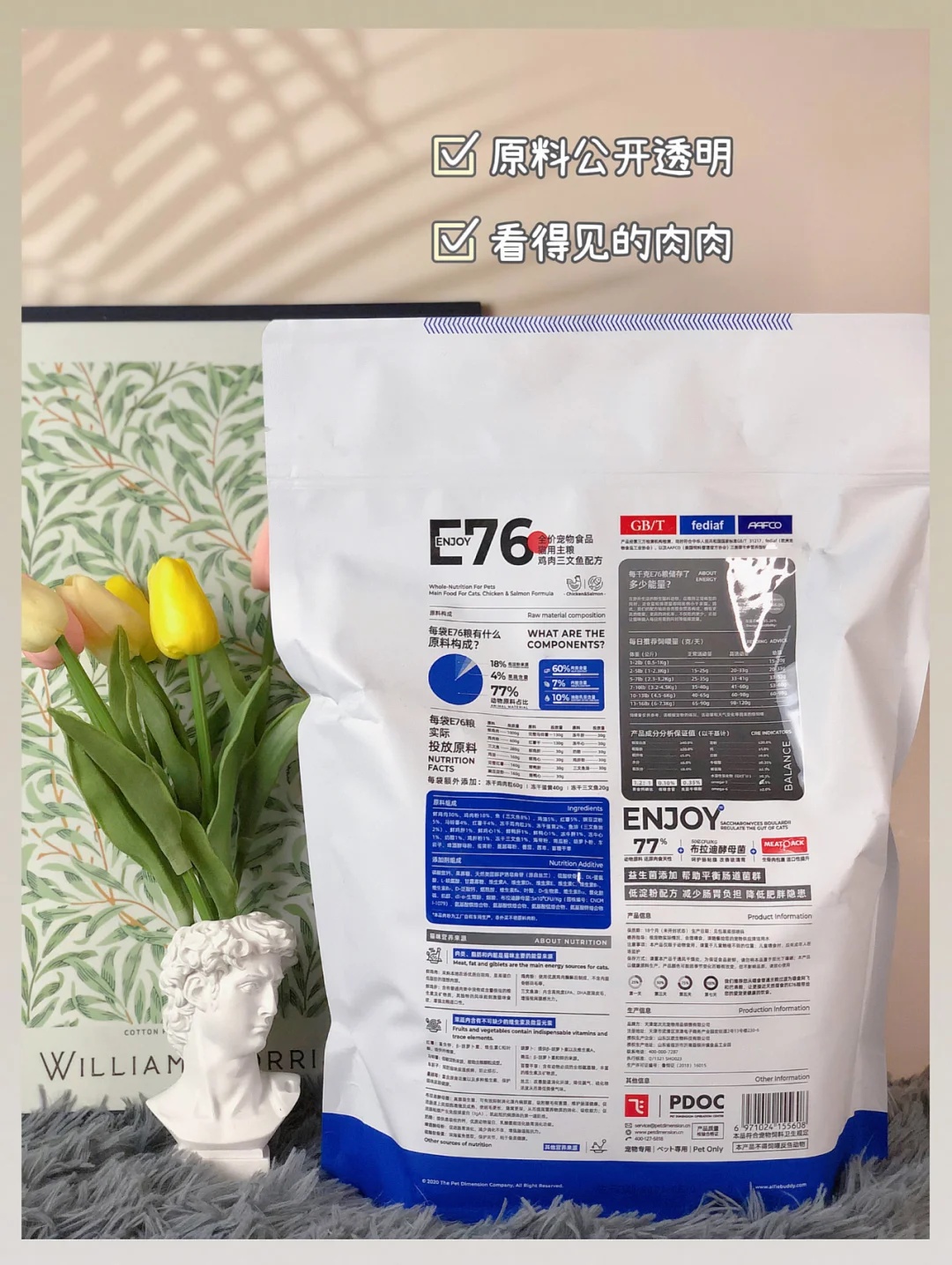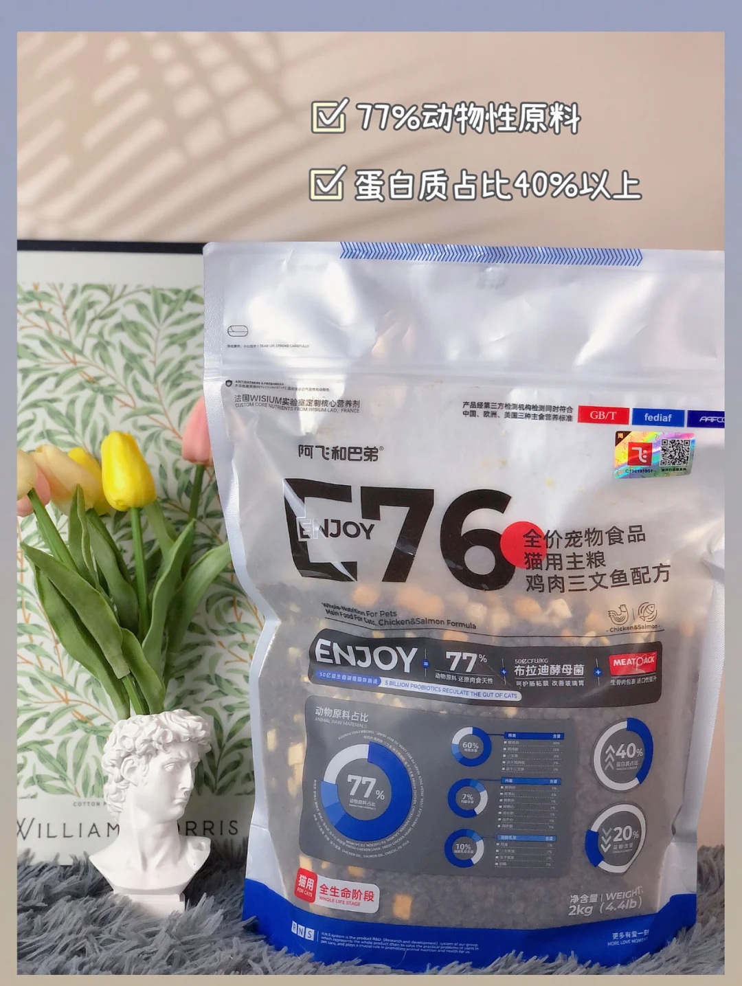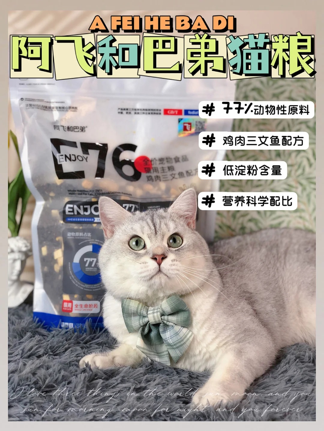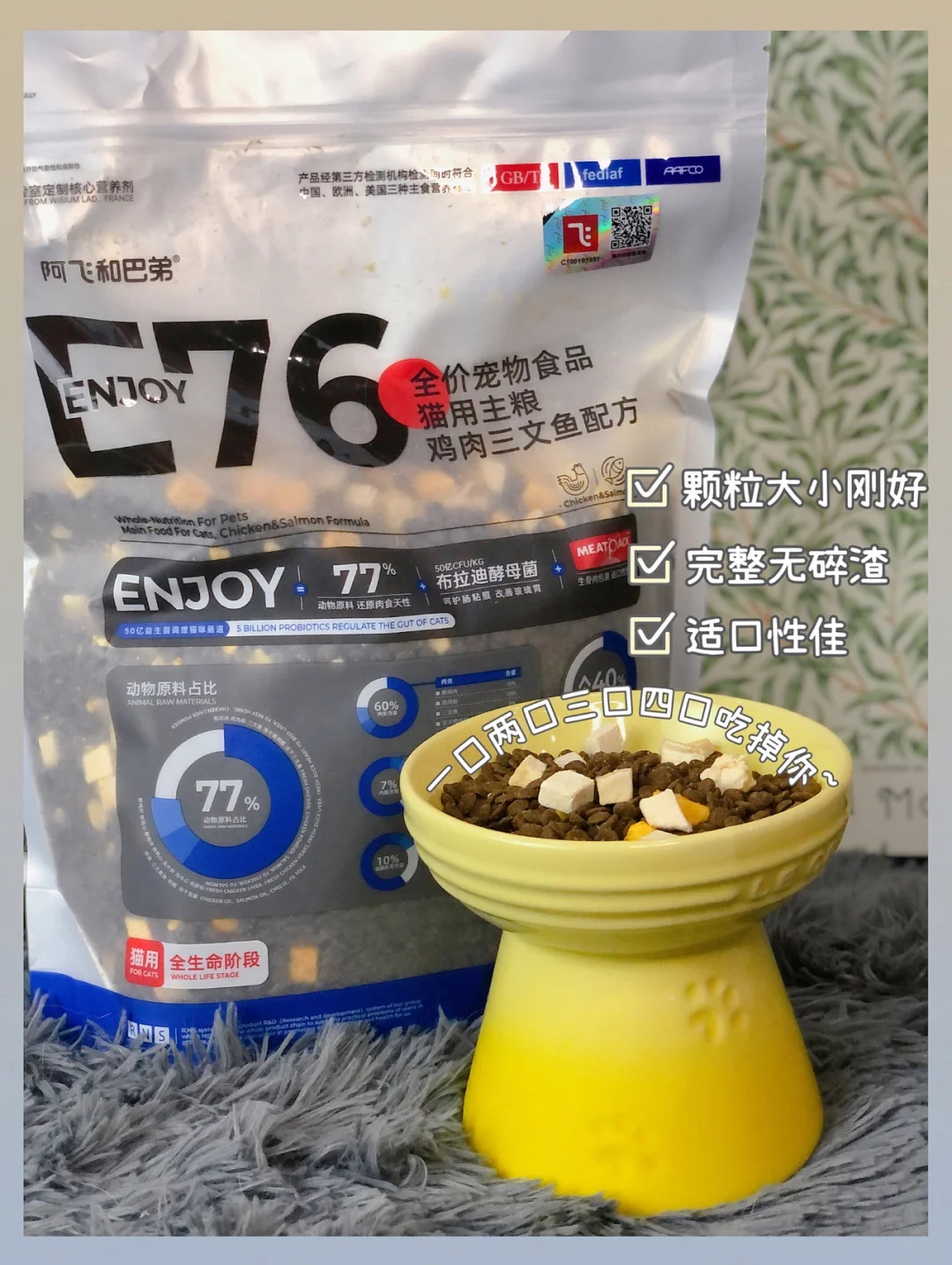 养猫家庭平时买的最多的就要属猫粮了,关于猫粮的选择也是一千个人就会有一千种不同的意见。像我家就因为华夫肠胃不好,所以在选择猫粮的时候我会更加慎重。听了朋友的安利,给我介绍了这款阿飞和巴弟E76无谷冻干猫粮✅ - 对于这款猫粮相信很多铲屎官都不陌生,很多测评博主都安利过~妥妥的国货之光。含肉量🥩高达77%,还原猫咪肉食天性。食材也都是公开透明可溯源的,而且都有检测报告,铲屎官喂起来也放心~冻干和蛋黄...