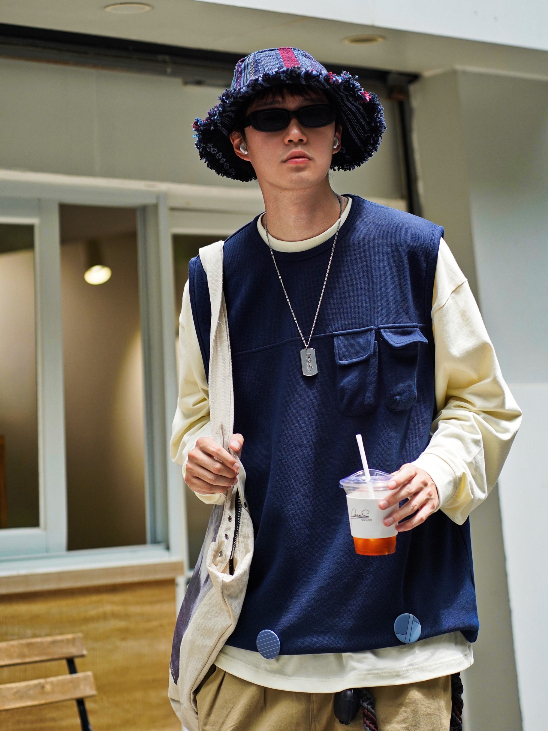🔗帽子: RNRNEPAL手工服饰 最近超喜欢戴这个帽子,感觉还挺百搭好看的,用帽子色系来呼应马甲。 🔗马甲:灵魂对撞 Soul Collision 选了款非常百搭的马甲,而且感觉好像没什么人穿蓝马甲,还挺喜欢的,也没有很复杂的感觉。 🔗裤子: 灵魂对撞 Soul Collision 选了一个卡其色的裤子来和上半身的颜色作为对比,然后整体搭配更丰富点。 🔗包: UNKNOWNWORLD ...