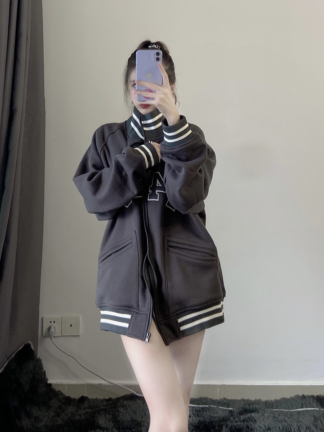 呼呼 开衫棒球外套太好看了吧 加绒但是很轻,穿上很学妹了哎,怎么办,有点过分可爱了 呼呼配小白鞋很搭,这鞋子厚底很显高满分了 秋天来的时候赶紧先可可爱爱吧 外套:f 426 鞋子:大叔家达文西鞋业