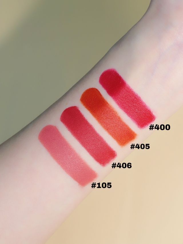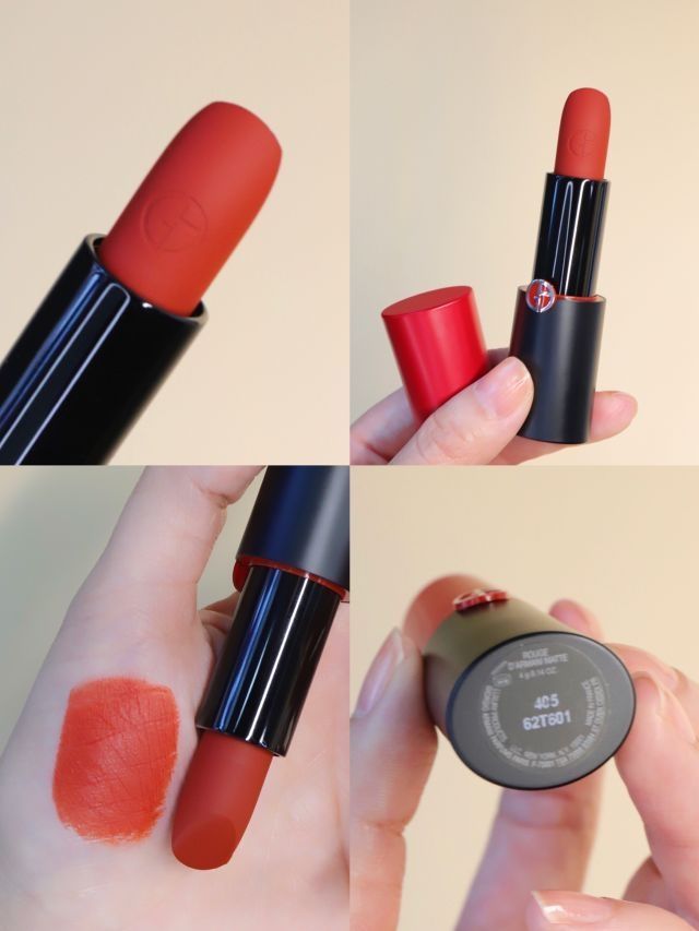 这次的阿玛尼全新红黑管唇奥利给~ 终于出了405唇膏了 我晕辽,上嘴hi好看 云绒唇霜质地,既哑光又舒fu、不拔干、不起皮 真的是藏不住了~收了四支也没踩雷 #400经典阿玛尼红,百搭不挑人,日常不出错 #405 烂番茄色,暖洋洋的巨显白 #406 蓝调复古红,气场全开 #105 甜甜的绝杀粉,温温柔柔 简直全员美丽,哈哈哈开心~