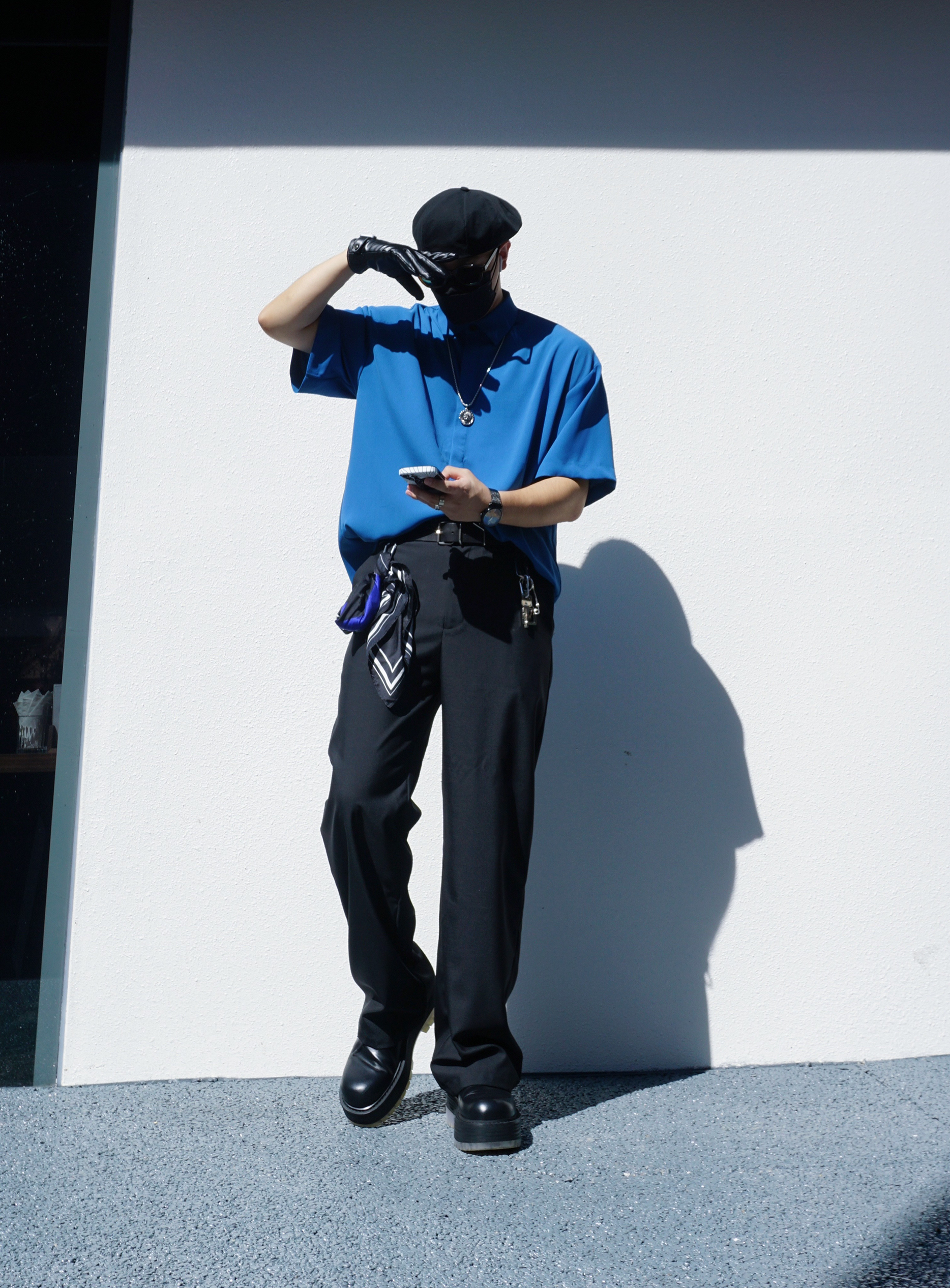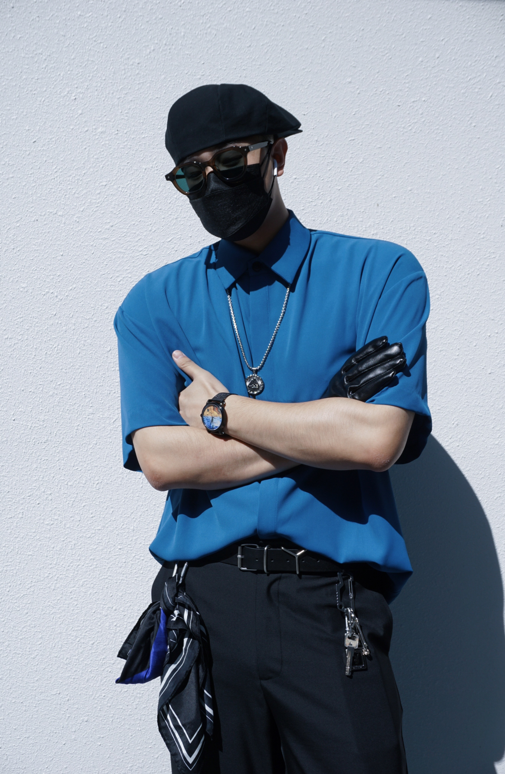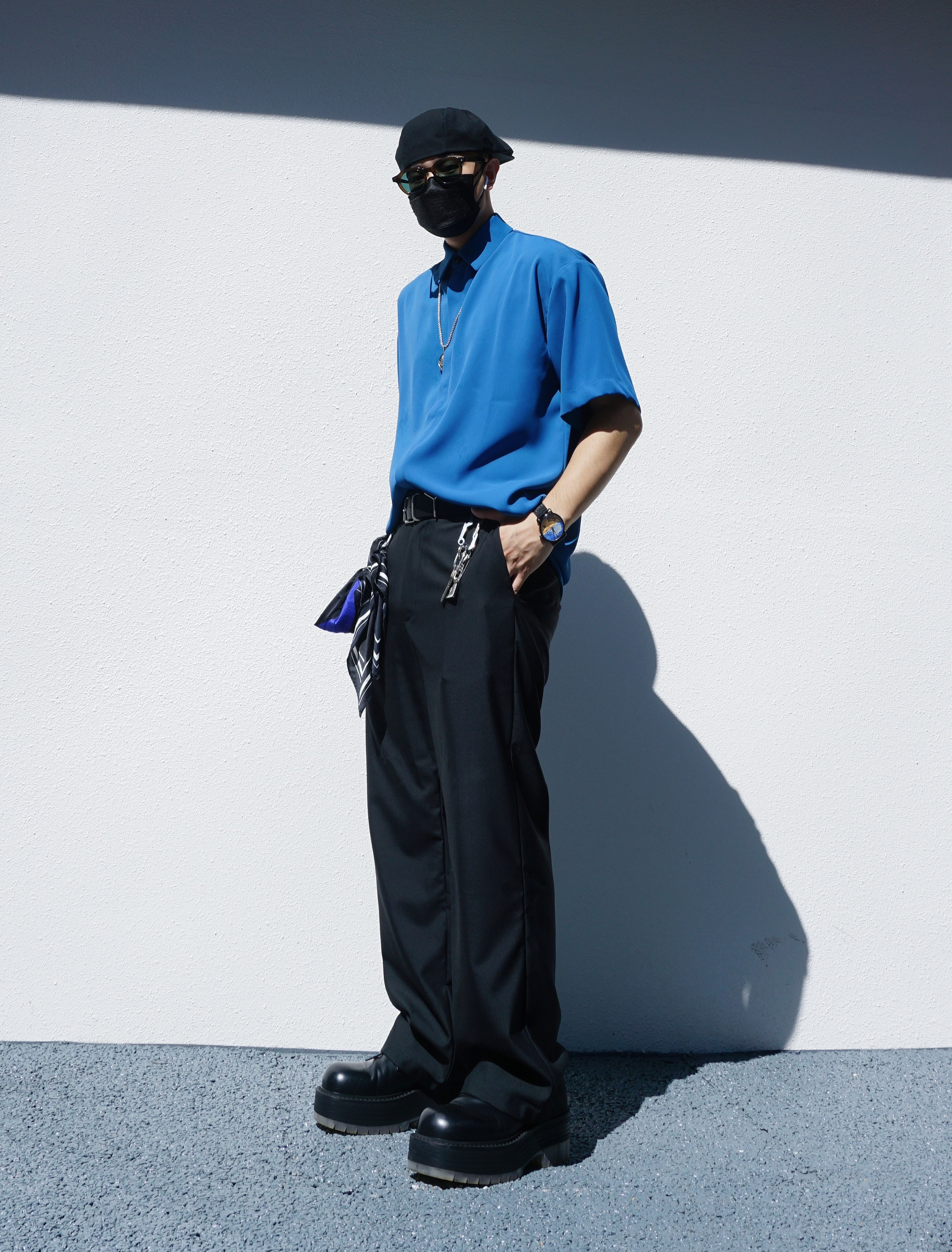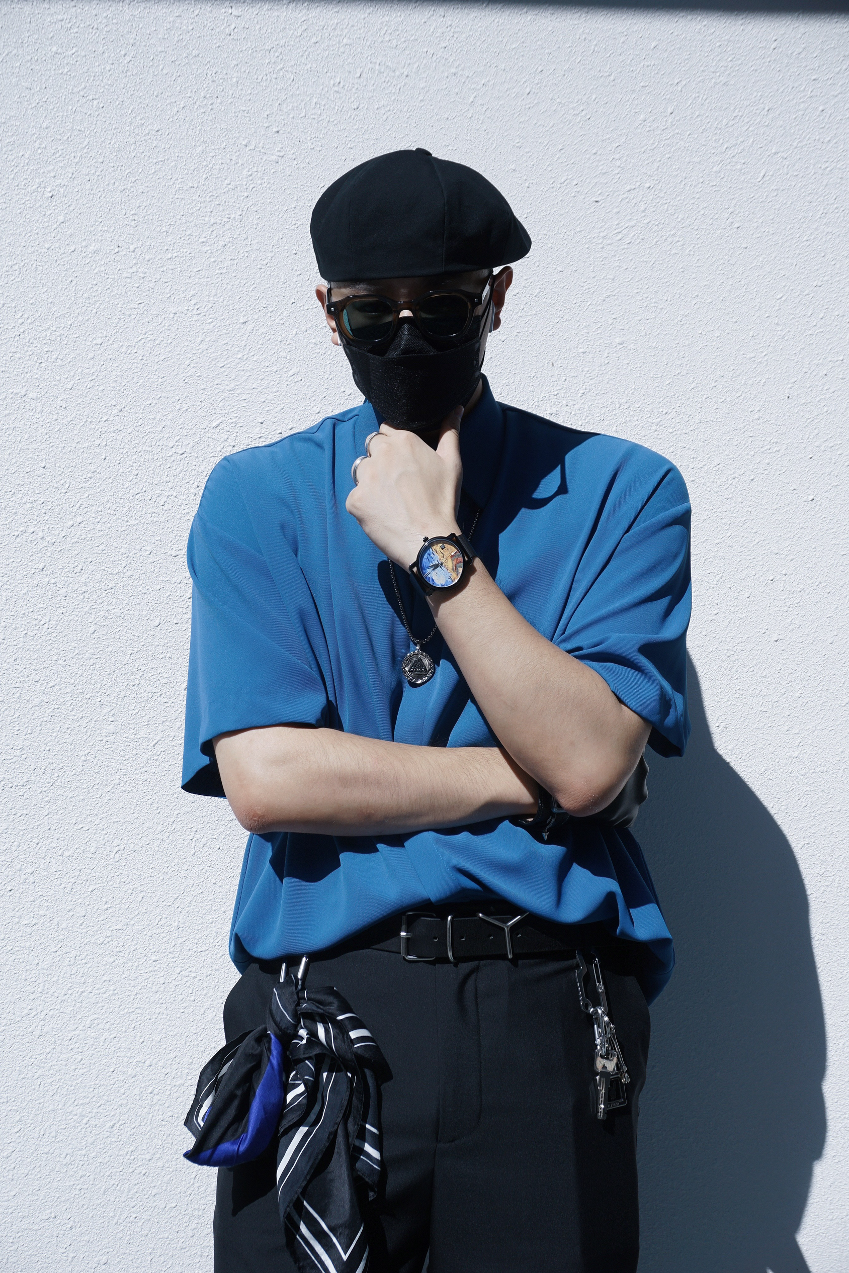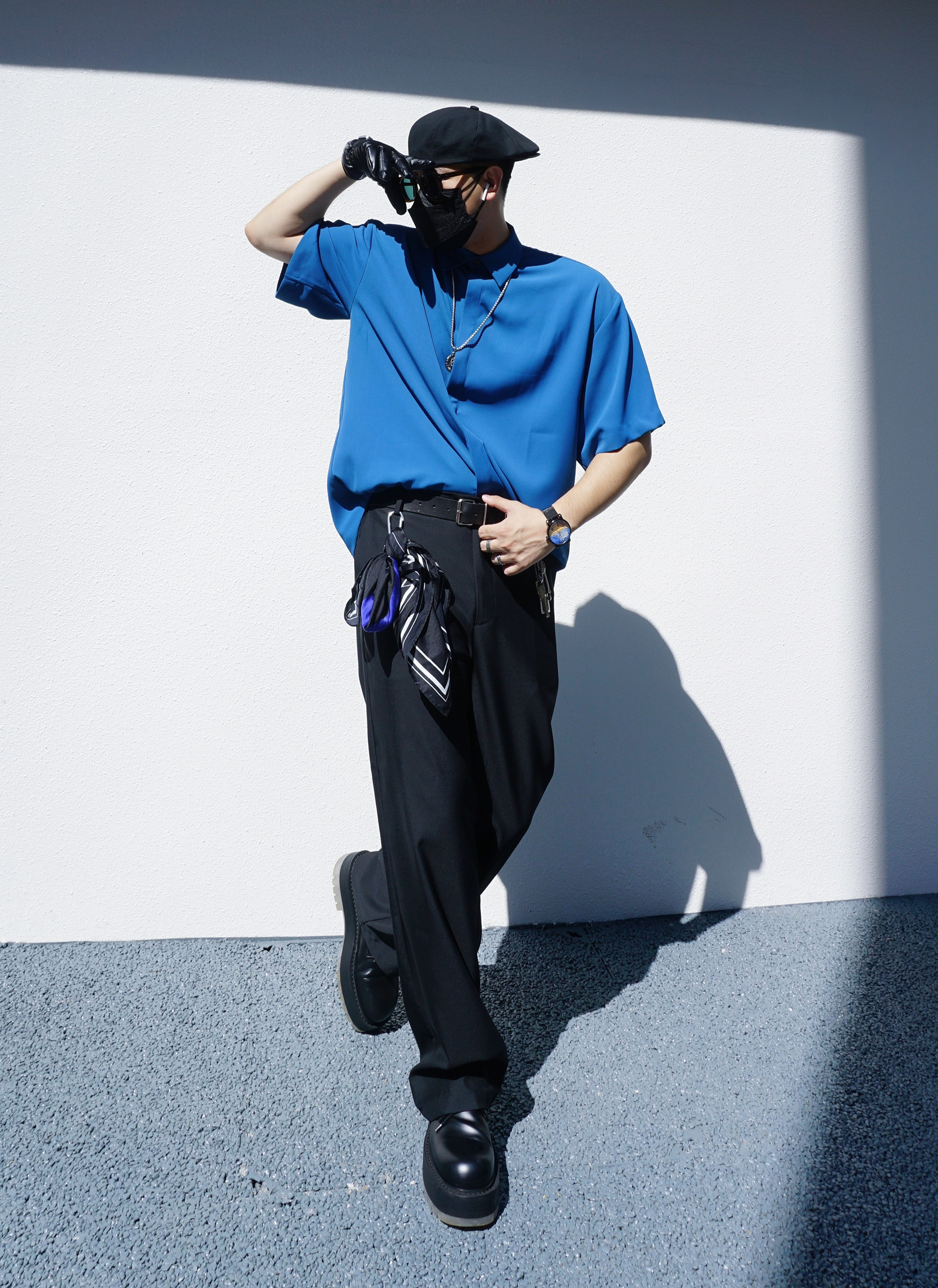 蓝色的优雅,黑色的神秘,梵高的画~ 绅士的安静,混搭的极致,麦田的群鸦~ 今日份的潮流混搭分享,希望你看到梵高的麦田群鸦怎么点缀夏末秋初的日常穿搭💙 全身选择了丝滑衬衫搭丝滑西裤,大头厚底皮鞋hold住全场,而裤腰里塞衣服的简洁搭配方式让比例更修长也更精神。同时绅士搭配必须要有贝雷帽和墨镜增强氛围感,腰间蓝色丝巾,脖上银饰项链,这些都是必不可少的小心思小点缀。最重要的配饰更是在今天的手表部分,我...