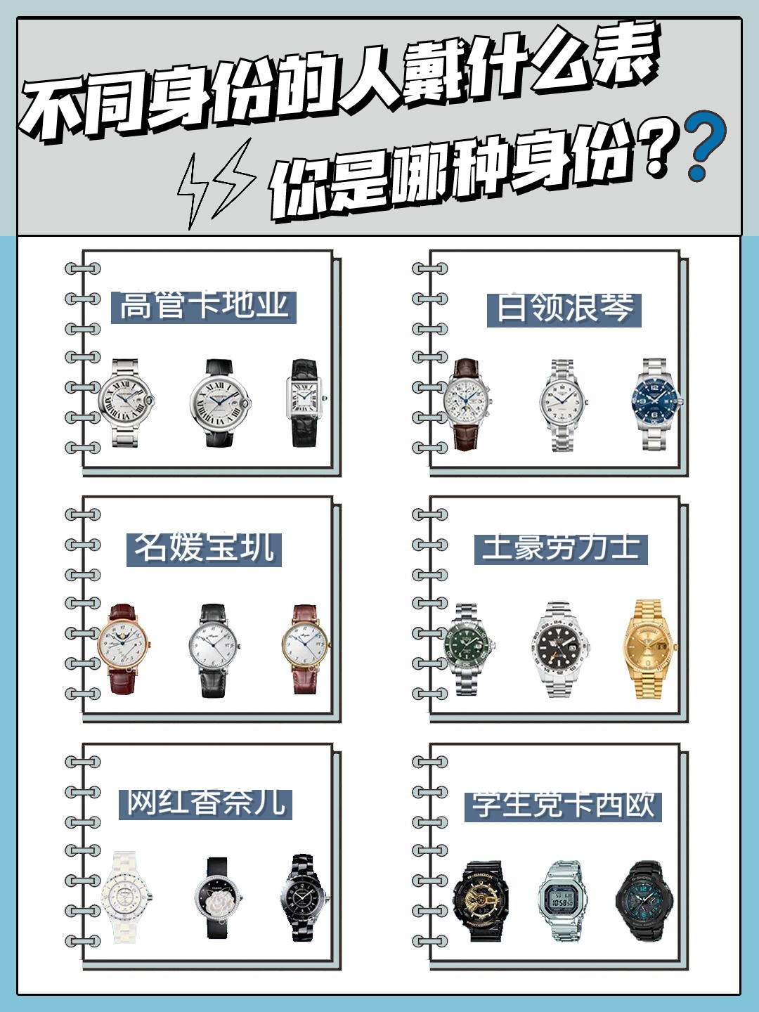 ♦️宝宝们,我来啦! 🛡今日分享一下比较时尚的手表合集~ 🧀作为上班族,佩戴手表给人感觉就是很注重时间~ 🎹给人可靠的感觉,用作穿搭也很不错~ 🏖喜欢的话,记得点赞收藏哦~ 小众手表|平价手表|百搭手表|学生党手表|手表推荐|轻奢手表推荐 图文来源于网络