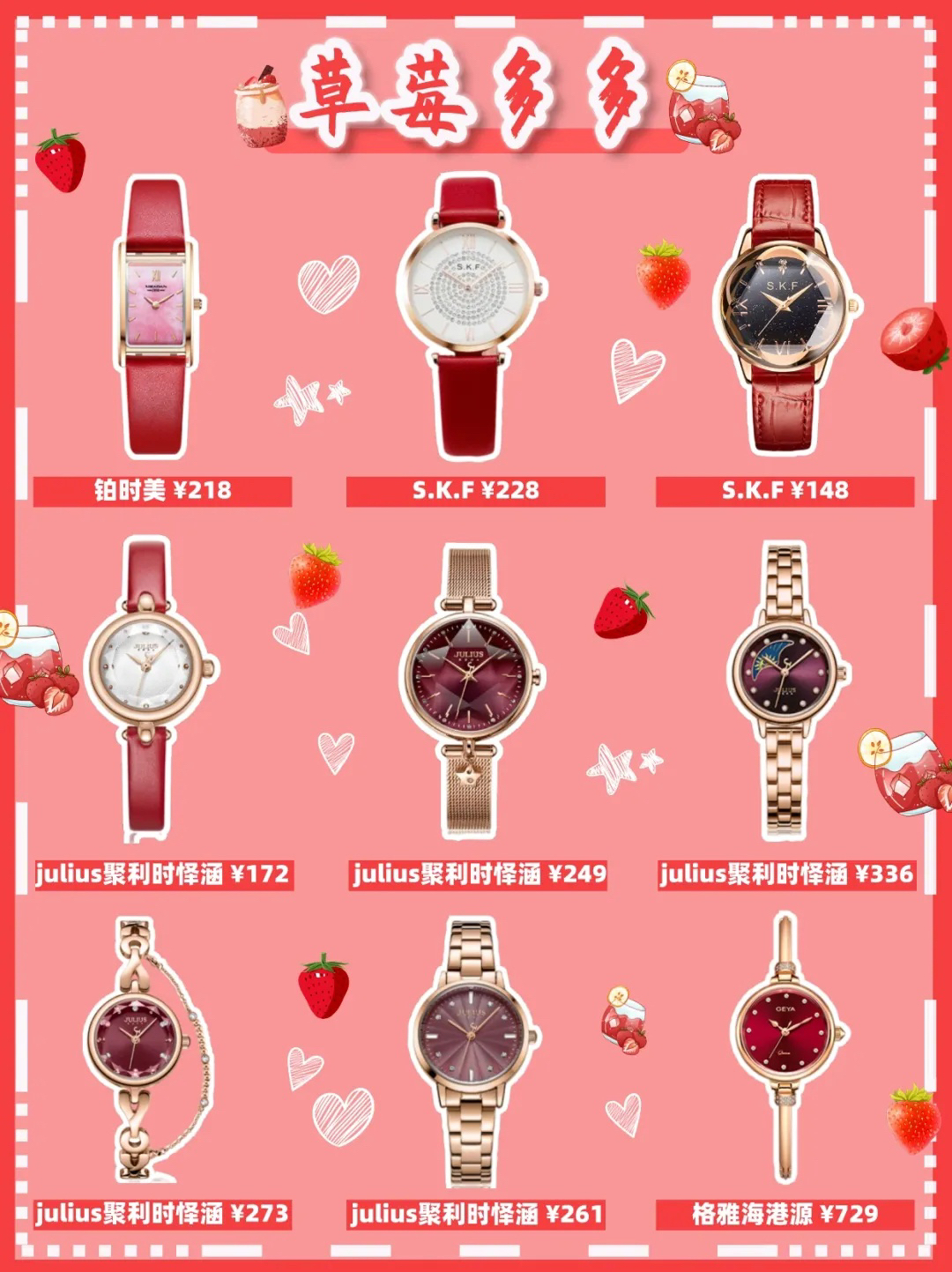本篇笔记关联了Julius/聚利时 复古时尚简约ins风皮带防水手表女 JA-864 C款-青春粉、AJIDOU/阿吉豆 休闲精致腕表小绿表 AK20N0002B0 绿色+黑色、Julius/聚利时 椭圆形鹅卵石ins风学生简约细带小巧气质防水方形大气复古手表 JA-1112 少女粉 GK-1112C等商品,为用户提供真实的使用体验和购买参考。