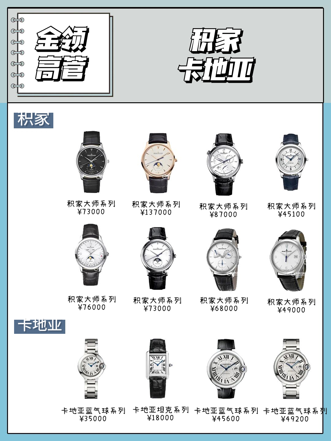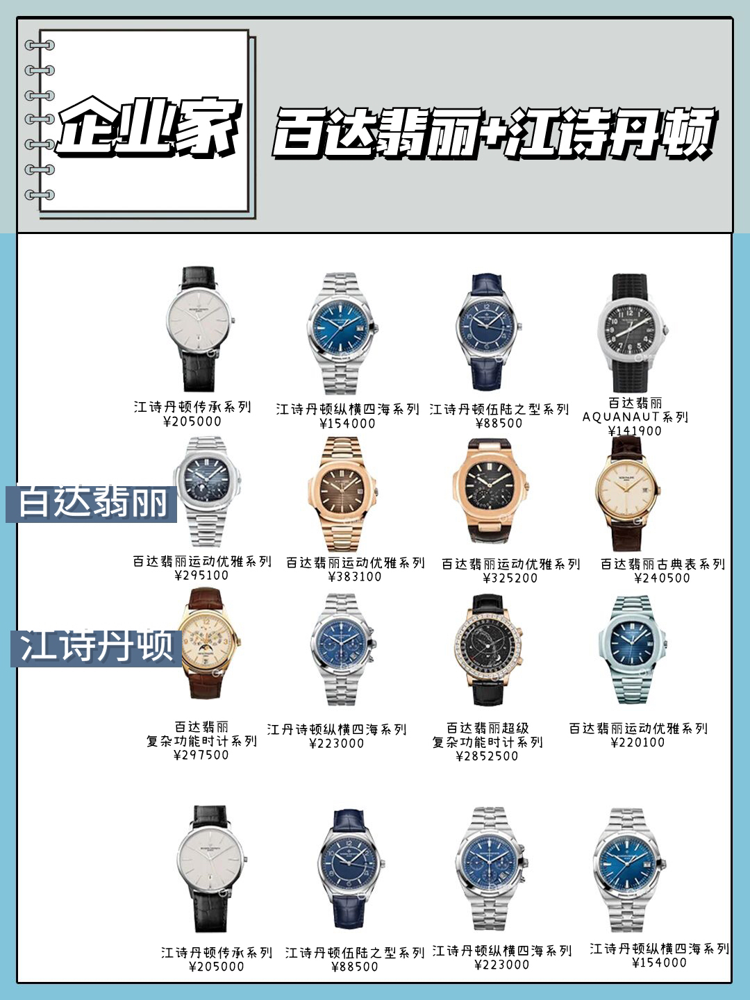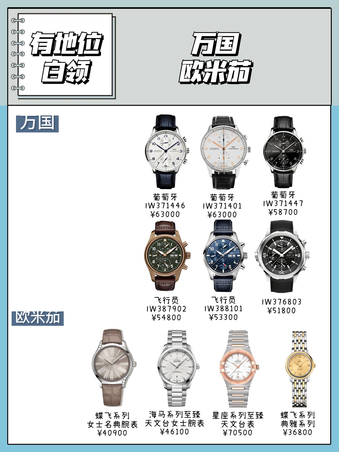 ✔️✔️我们都知道腕表不仅是地位的象征还是身份的象征,不同身份的人在戴表上面也有研究,想看看你是处于哪个地位就来看看这一篇吧‼️ 🔸有身份地位的人:万国 🔸白领:欧米茄 🔸有钱人:沛纳海 🔸富二代:理查德米勒 🔸有地位:萧邦 🔸金领:积家 🔸高管:卡地亚 🔸土豪:劳力士 🔸网红:香奈儿 🔸富婆:梵克雅宝 🔸名媛:宝玑 🔸企业家:百达翡丽和江诗丹顿 🔸学生党:卡西欧/DW 图文来源于网络