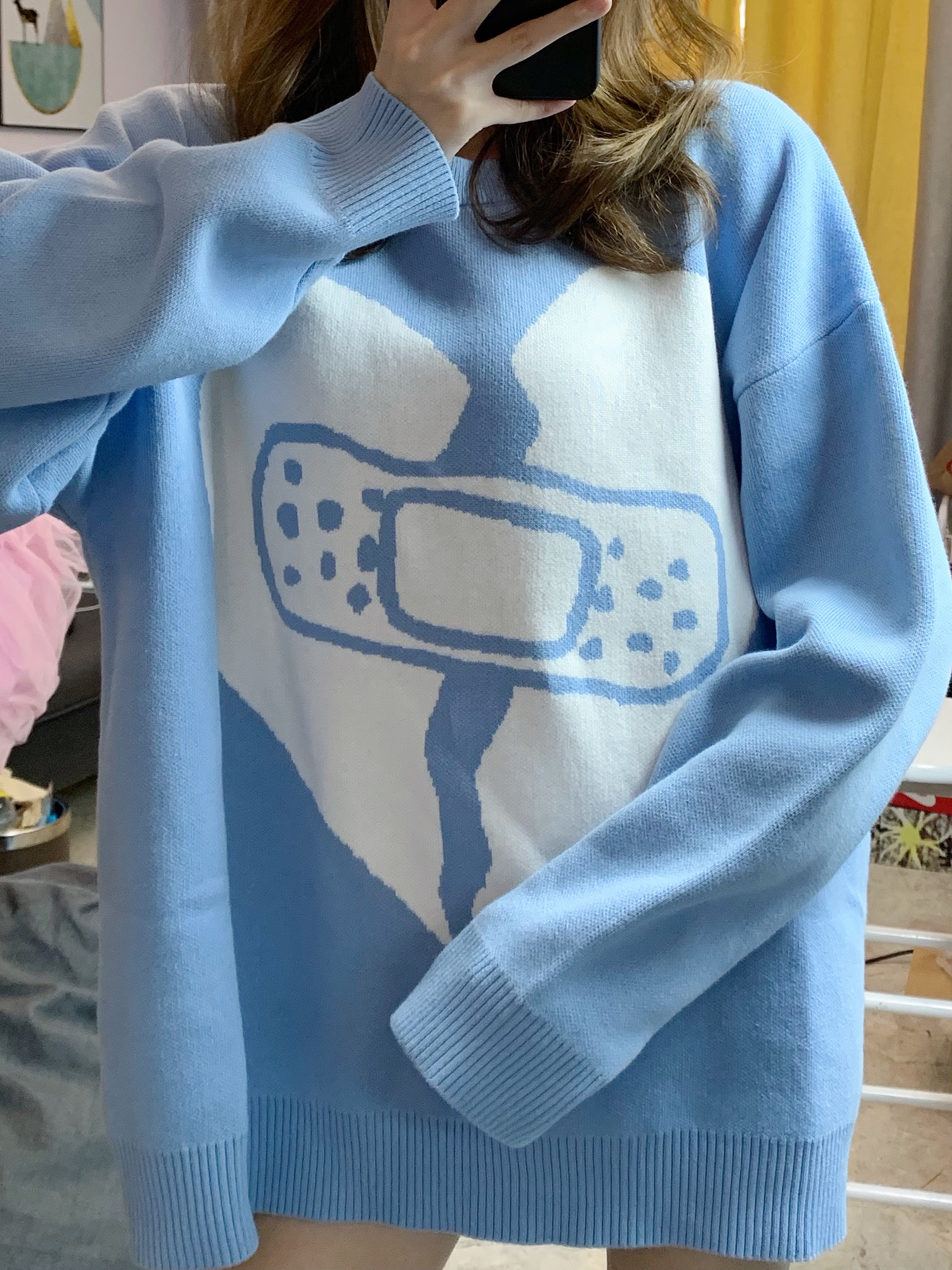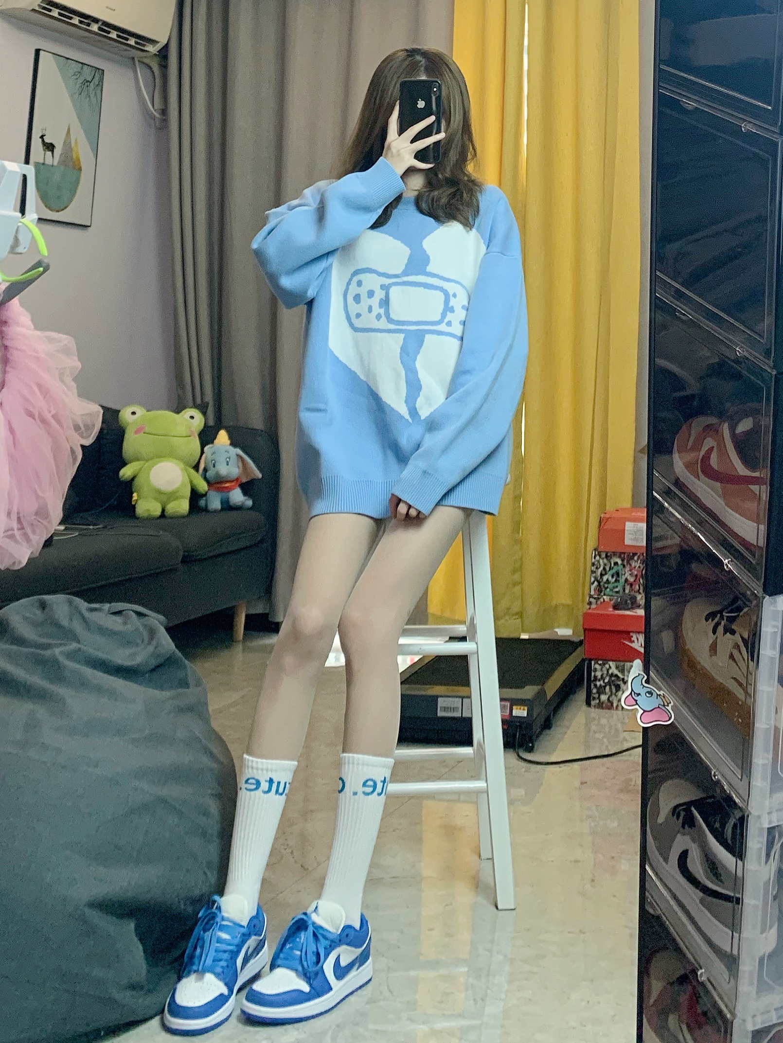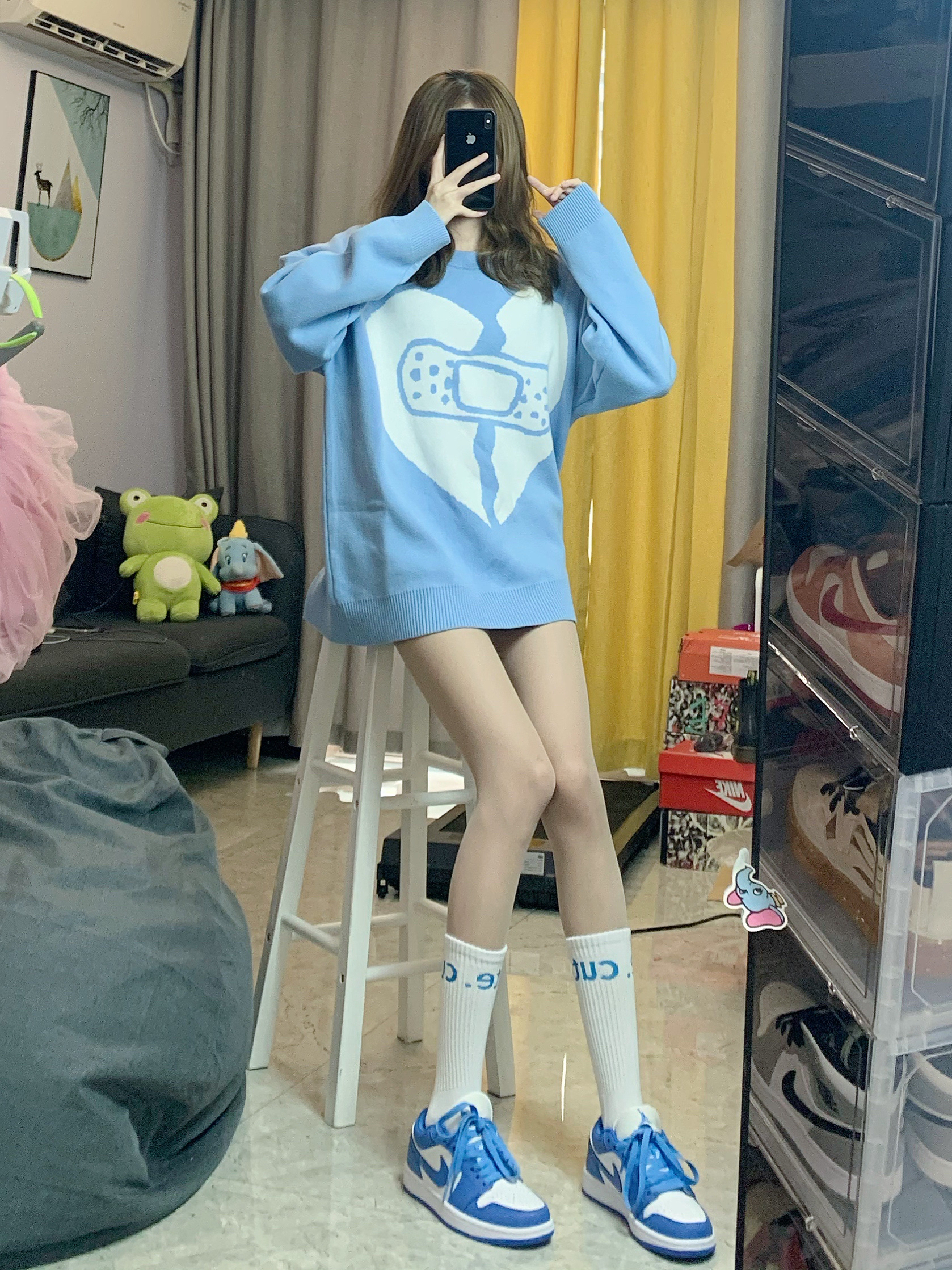 👔毛衣:WODA 奶蓝奶蓝的颜色太温柔了 🧦袜子:BURNDEVICE燃烧装置 👟鞋子:AJ1大学蓝
