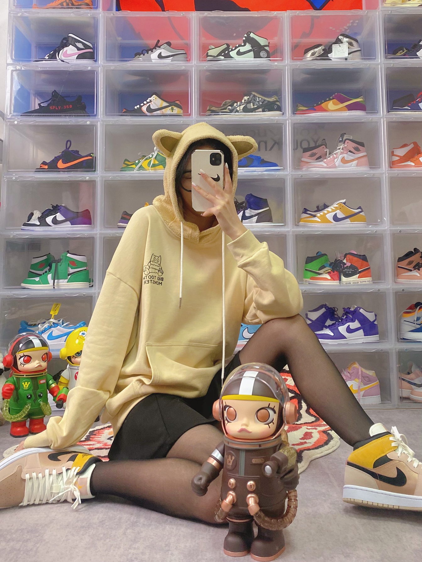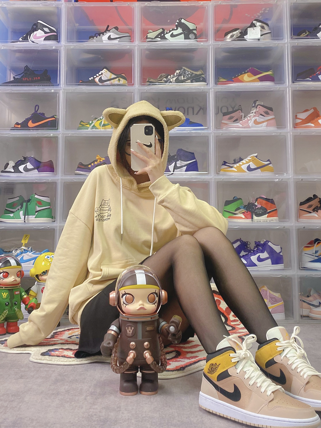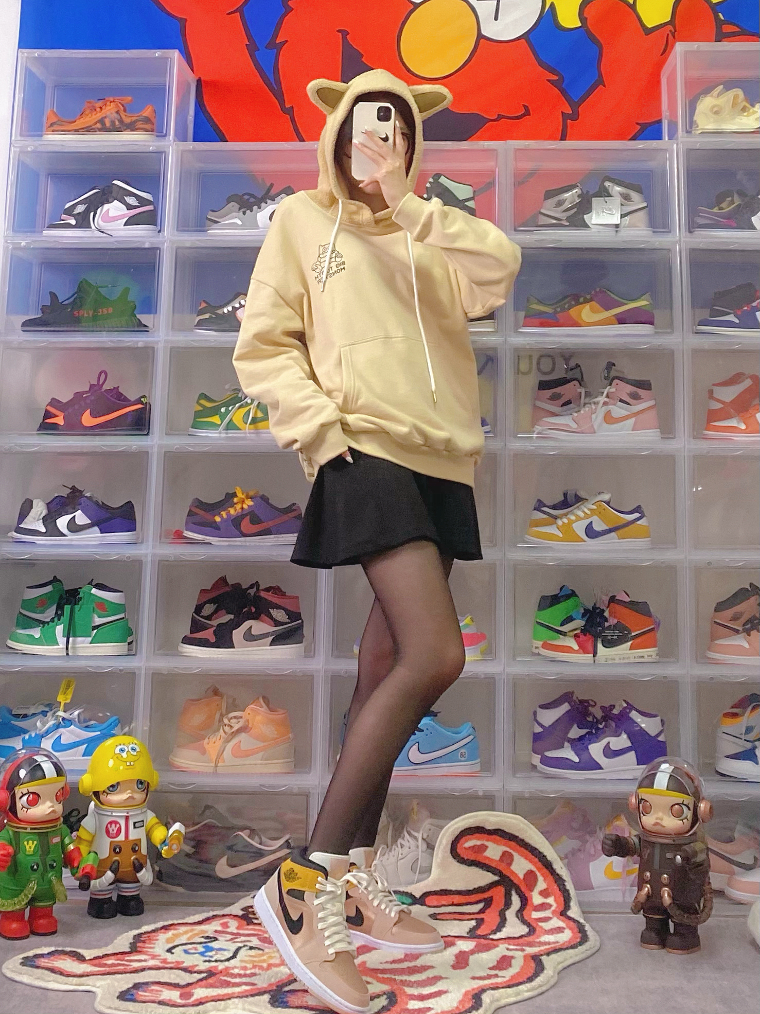 🧥:bt 👟:aj1 mid 奶茶 来跟着molly学穿搭 经典的卡其和黑色的搭配 秋天可太适合奶茶色啦