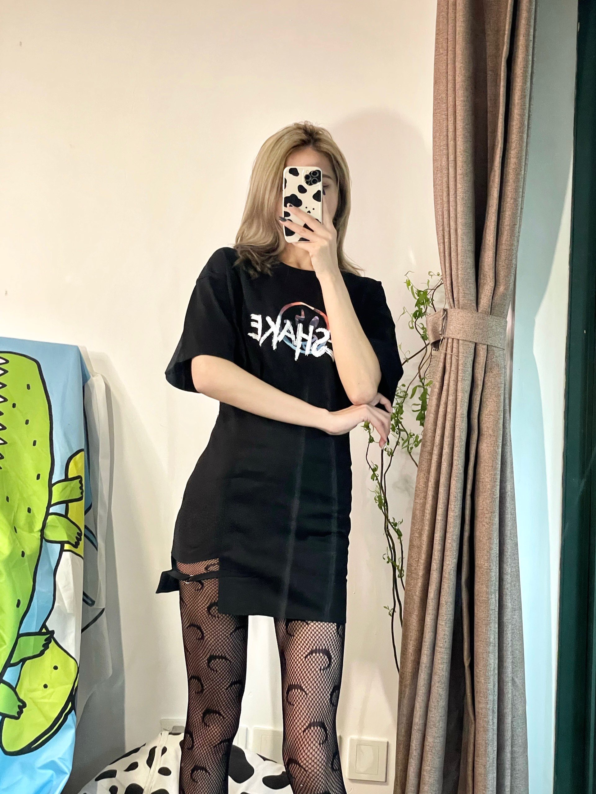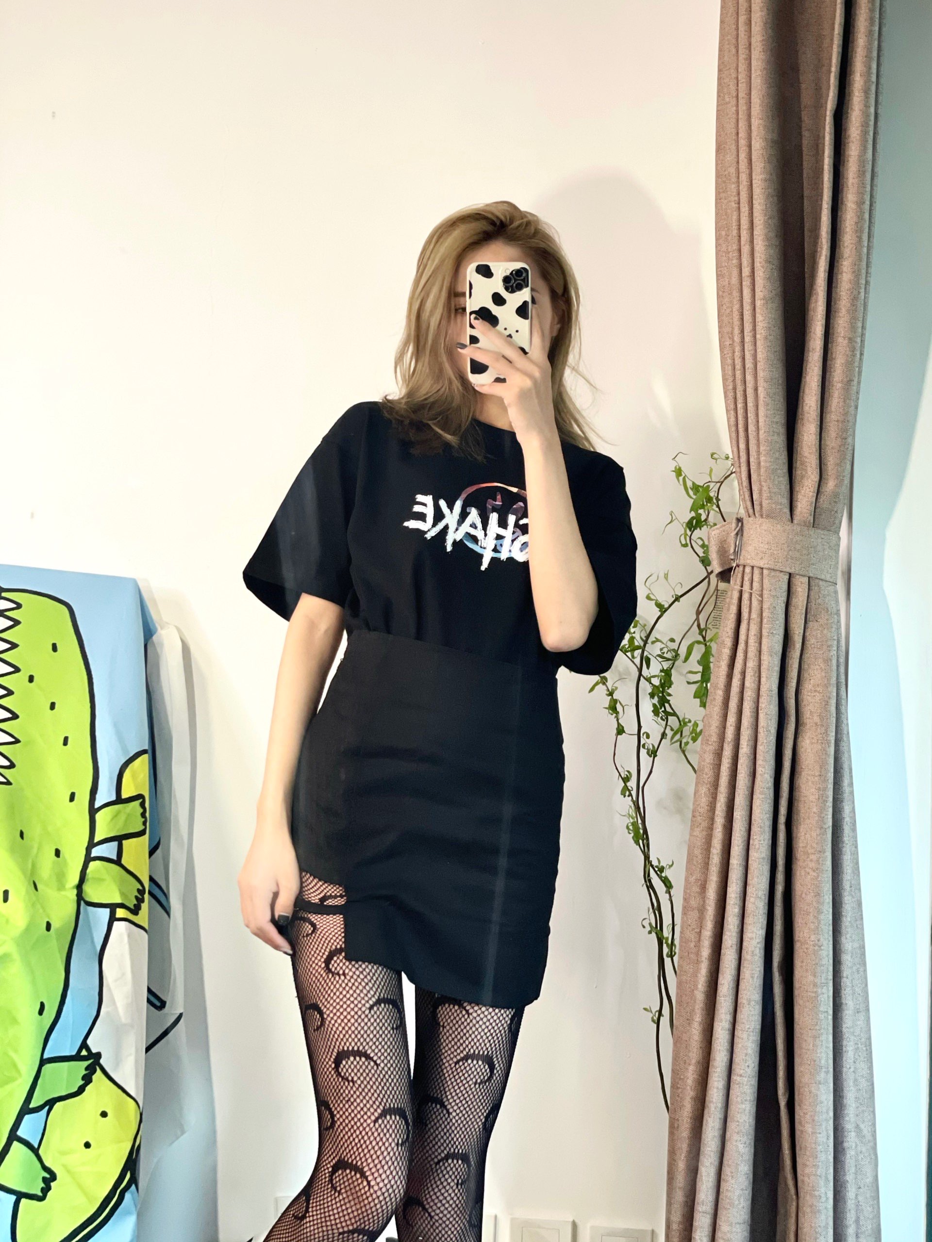 又到了该买新T恤的季节啦❕印花T恤一直是我的最爱💗 搭配短裙短裤🩳太省心啦 👔:#Reshake华菲型格 🧦:#marine serre 本次穿搭的小心机就是月亮🌙袜子啦 黑色T恤塞进小裙子里就显得很有腰身! T恤油画印花让全身黑色穿搭更加亮眼🪜 背后的印花图案也很有趣哦❕ 搭配月亮图案的网袜让Look更加🆒 (主要是太显瘦啦! 可以搭配马丁靴整个人就会很A!气场在线📞