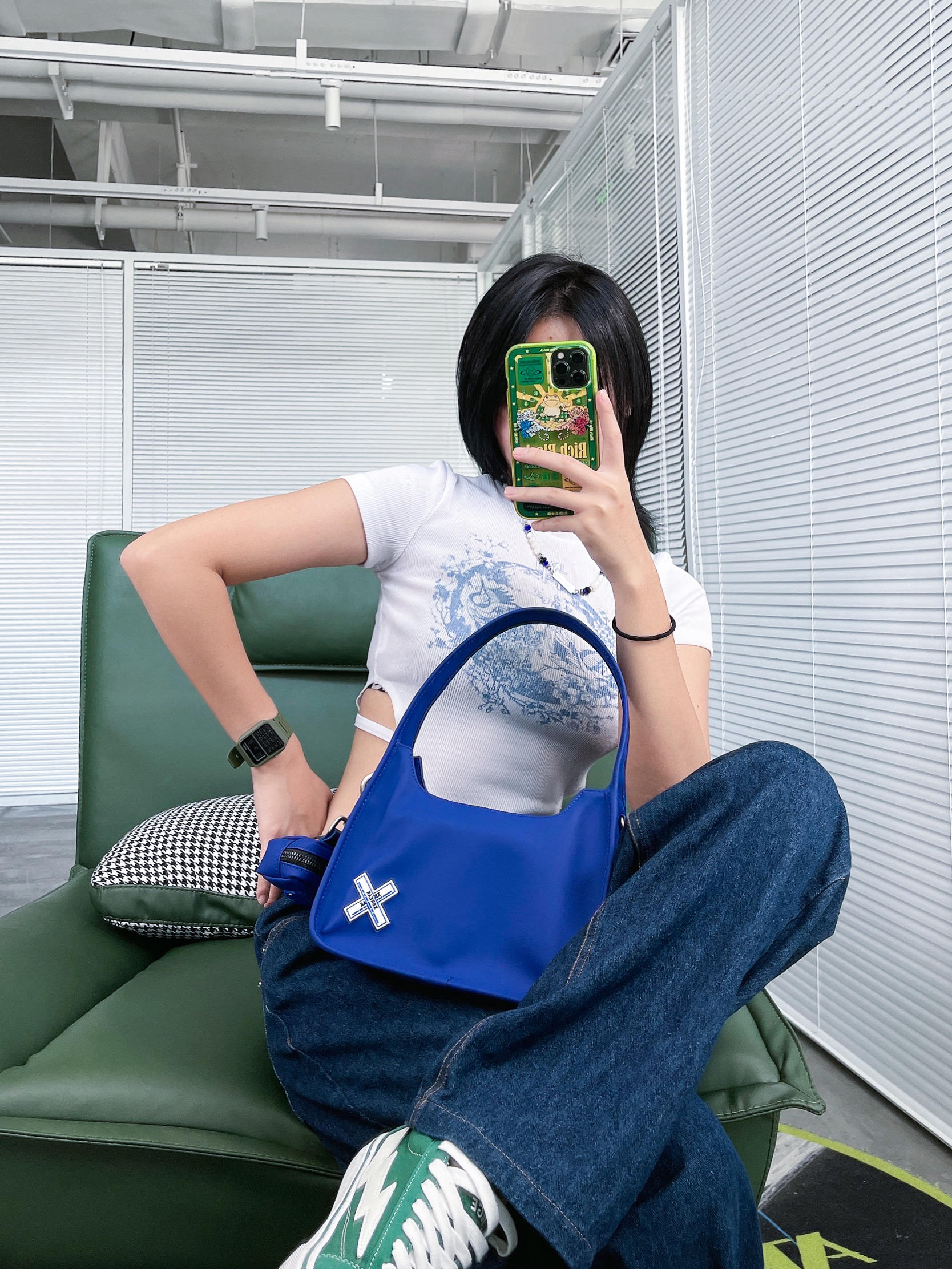 克莱因蓝也太红了!!!跟上潮流的步伐冲鸭!!! 衣服单品蓝的挺多的了,搞个包! 原本觉得宝蓝色应该是非常不好搭配的颜色,现在发现,做搭配这个颜色真的是没话说!显白!亮眼!不浮夸!!蓝色系穿搭,记得搞一个克莱因蓝试试!! 除了穿搭配饰不能少!手表准备起来,想到我小时候最想要的不就是带计算机的手表了吗!!!