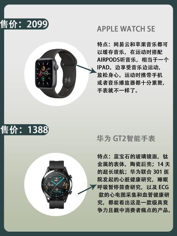 本篇笔记关联了HUAWEI/华为 WATCH GT2 (46mm) 智能手表 麒麟芯片 蓝牙通话 运动 血氧检测 两周长续航 音乐 防水 心率 新年红、Apple/苹果 Watch Series 6 智能手表 心脏健康 黑色、HUAWEI/华为 WATCH GT2 Pro 智能手表 蓝牙通话 两周续航 心率 防水 ECG 保时捷设计款 钛金灰等商品,为用户提供真实的使用体验和购买参考。
