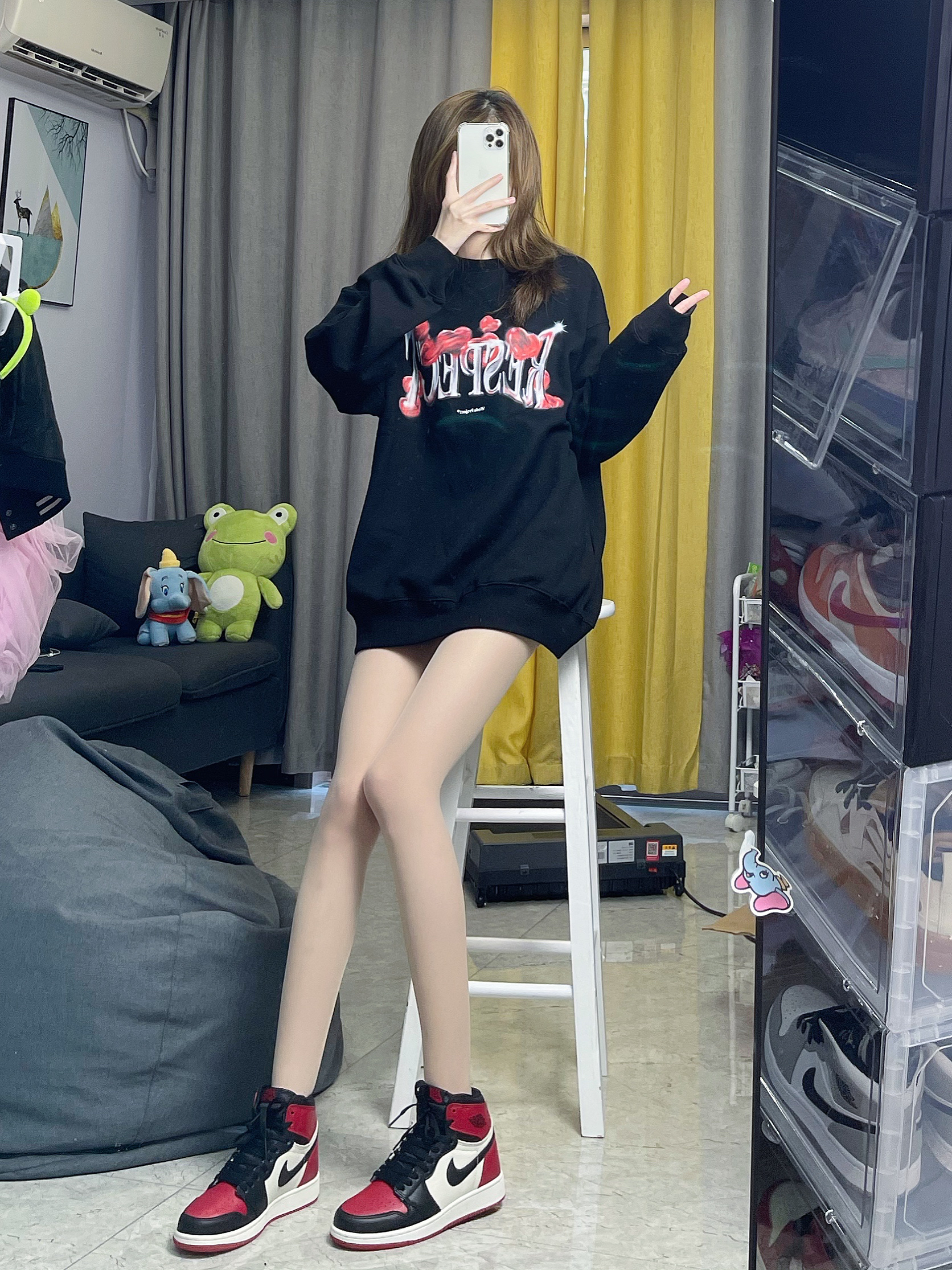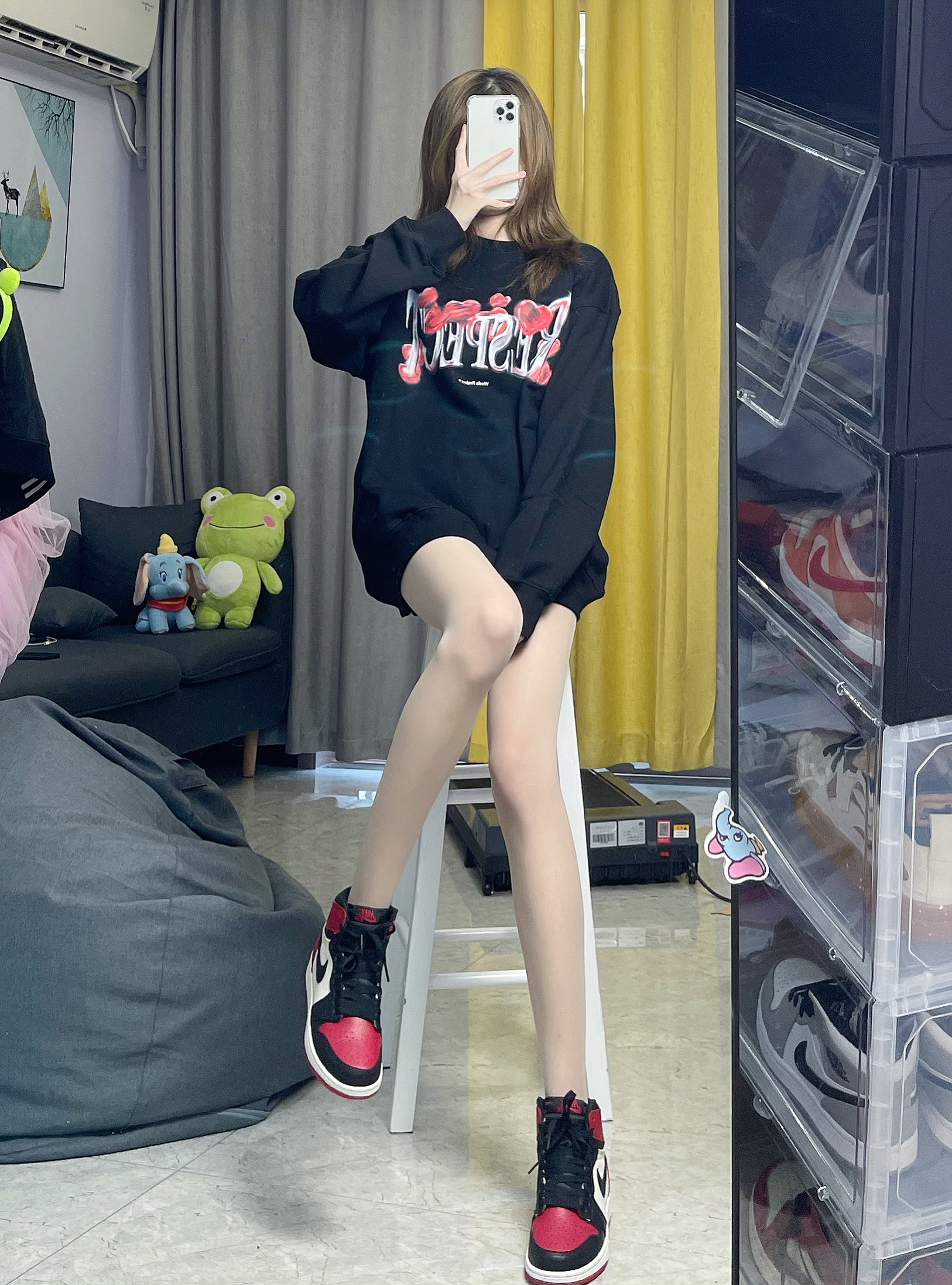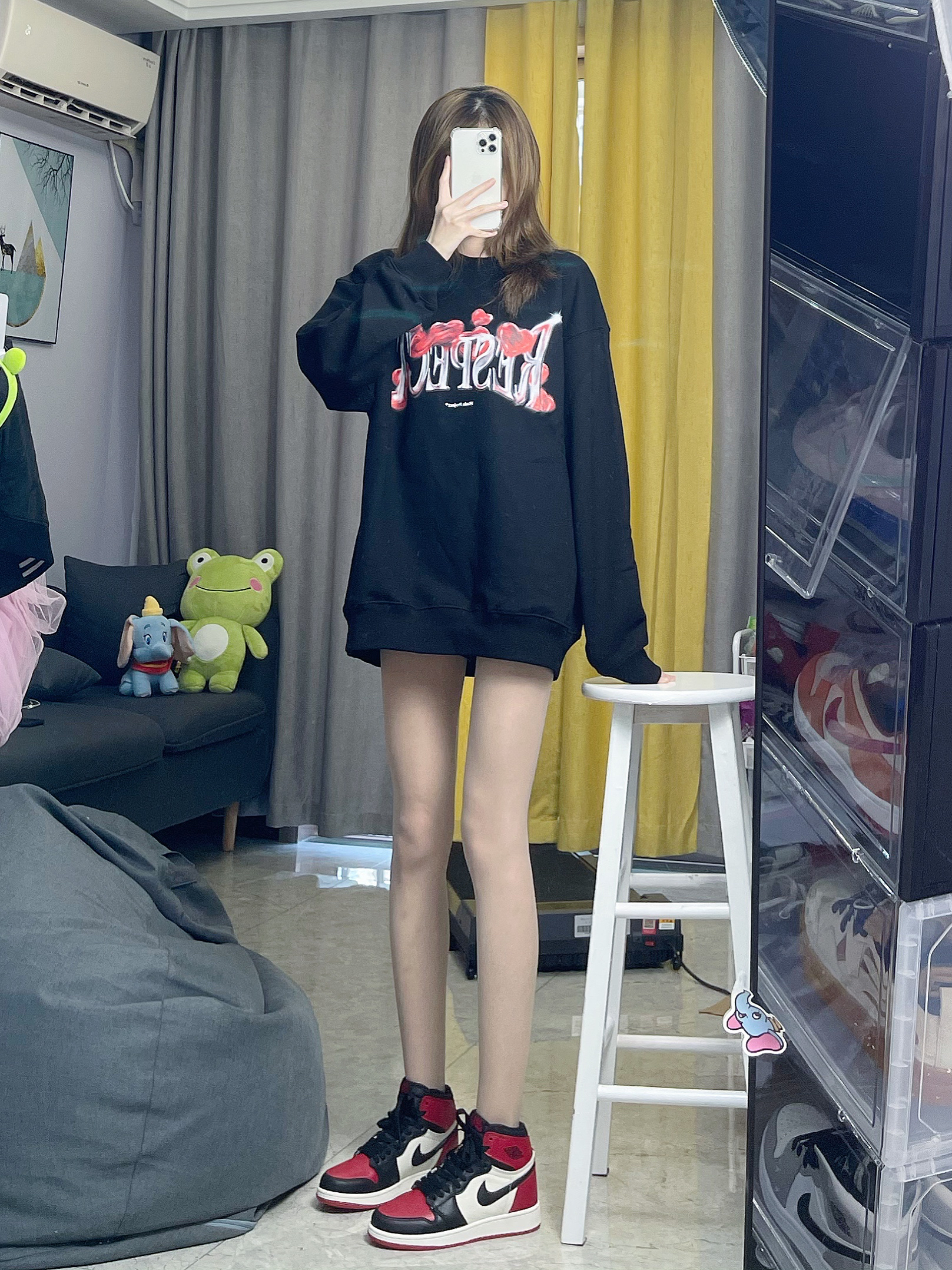 👔卫衣:WODA 这件卫衣前面红色印花字母很嘻哈风,oversize的卫衣呐!慵懒随意的穿搭 👟鞋子:红脚趾AJ