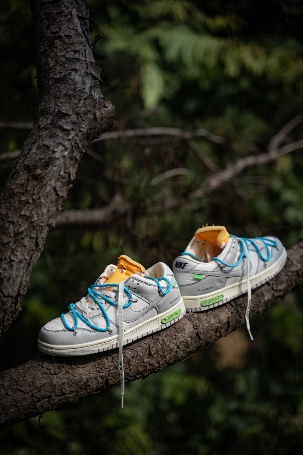 Off-white x Nike Dunk Low“The 50”灰白NO.20蓝鞋带黄扣 实拍鉴赏