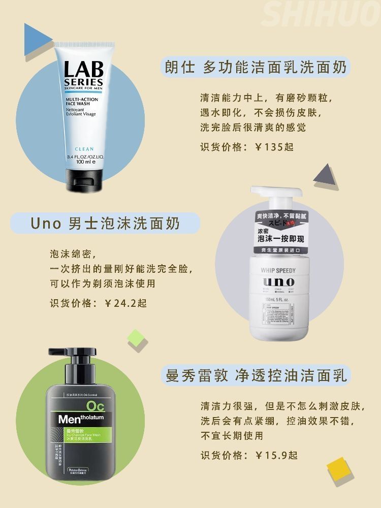 学生时期男士洁面也很重要哦,要不然每天面部出油很影响颜值的,今天给大家盘点那些学生党超爱的宝藏洁面 😘1.产品全称:曼秀雷敦 净透控油洁面乳 识货价格:¥15.9起 推荐指数:⭐️⭐️⭐️ 核心功能:控油 深层清洁 味道质地:淡香味乳液状 使用体验:清洁力很强,但是不怎么刺激皮肤,洗后会有点紧绷,控油效果不错,不宜长期使用 😘2.产品全称:Uno 男士劲致净颜泡沫洗面奶 识货价格:¥24.2起 推...