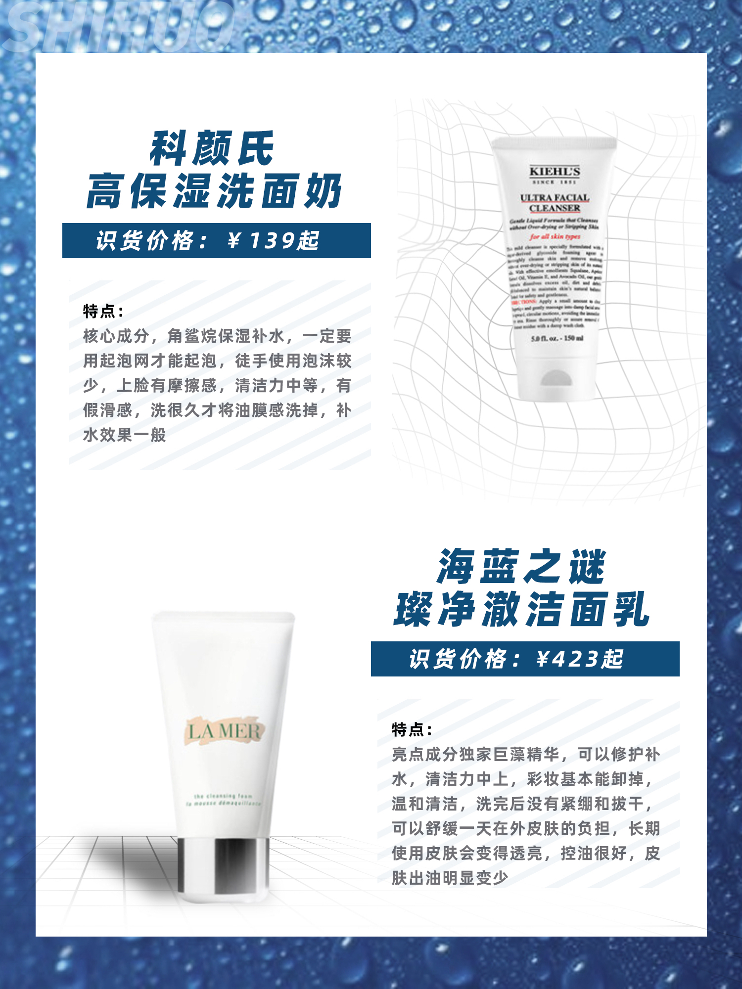 洗面奶作为最日常使用的清洁产品,也是护肤最重要最基础的一步,这几款学生党也能用的高性价比大牌洗面奶,一定要给大家安排上,答应我,男生也要精致护肤哦 1.科颜氏 高保湿洁面啫喱清洁温和洗面奶 识货价格:¥139起 核心成分,角鲨烷保湿补水,一定要用起泡网才能起泡,徒手使用泡沫较少,上脸有摩擦感,清洁力中等,有假滑感,洗很久才将油膜感洗掉,补水效果一般 2.La mer/海蓝之谜 璨净澈洁面乳洗...