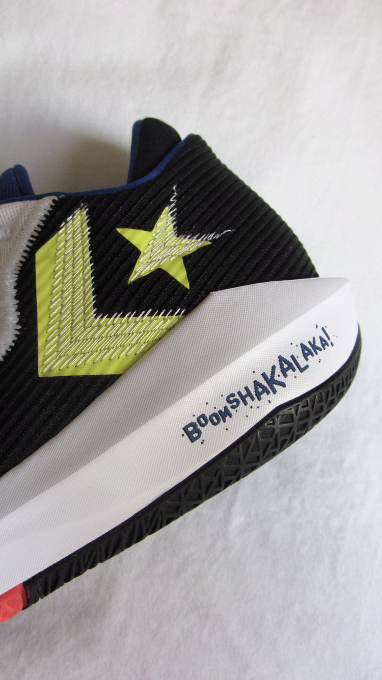 👟:Converse All Star BB Jet 👀:这个配色是90年代街机篮球游戏NBA JAM的合作款,鞋款采取了蓝绿鸳鸯的配色设计,并且将街机游戏🎮的元素融入细节,「故障风」的星箭Logo抓人眼球。 中底的Boom Shakalaka💥字样,代表着灌篮后篮筐摇晃的声音;至于Razzle Dazzle,个人推断是“在你头上暴扣”之后,对方陷入眩晕状态😵💫的意思。 🏀:毕竟这是一双实战篮球...