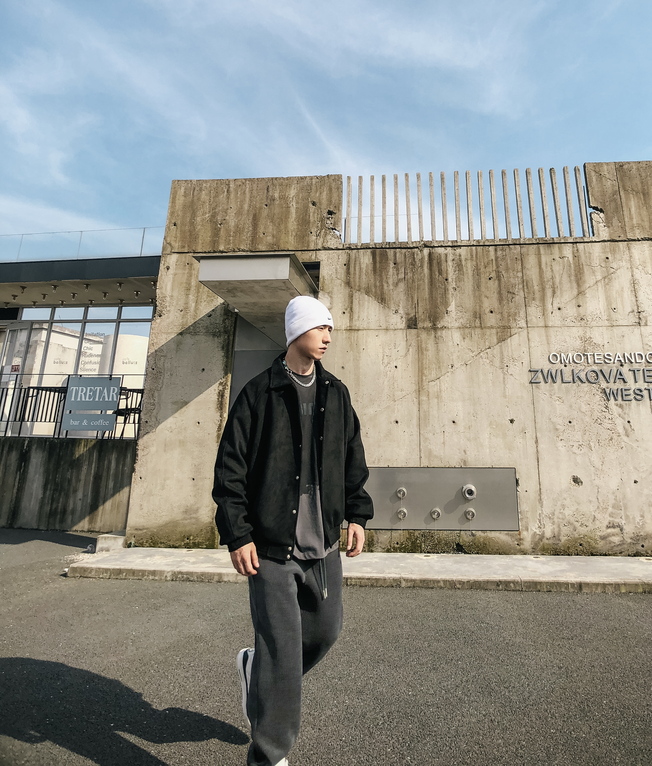穿搭🉐🆒: 🌈上衣:高街风格的夹克比较小众,但实际上却很好驾驭,小众的原因或许是因为大家不知怎么搭配。绒面的手感舒服,厚度足以在冬季做一个靓仔。 🌈裤子:特殊的灯芯绒面料,垂感,厚度,手感,完美合并。相当🐮🍺。 🌈帽子:冬季用冷帽搭配,会比鸭舌帽看着更融洽一点。 🧢帽子:nike 💫项链:asseen ⌚手表:没带 👕上衣:哈林哥studio 🩳裤子:哈林哥studio 👟鞋子:aj3 藤原浩
