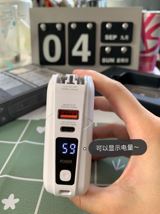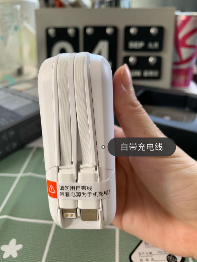 😁最近在🍑上面买了一款充电宝, 😁自带苹果🍎跟Type C数据线, 还有自带充电头🔌, 外出不必再带线和头, 😁15000mah容量,可以带上飞机✈ 随时随地可以显示剩余电量, 还可以当做手机📱支架,追追剧️ 作为一个充电宝,充电效率接近线充, 体积重量(320g)比不错, 😁长度差不多是我的食指那么长,携带方便, 必须推荐!!!冲!