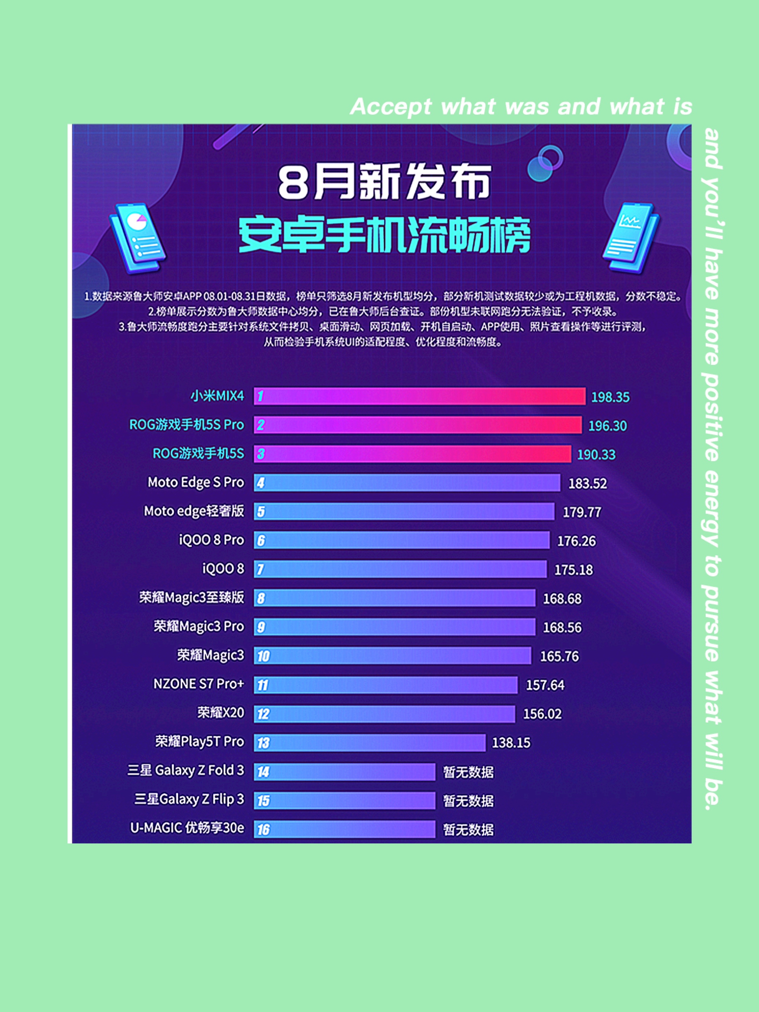 👌据悉,鲁大师公布了8月安卓手机流畅榜榜单,其中小米MIX 4以流畅度均分198.35分高居榜首,排名二、三位的分别是腾讯ROG游戏手机5S Pro和腾讯ROG游戏手机5S。