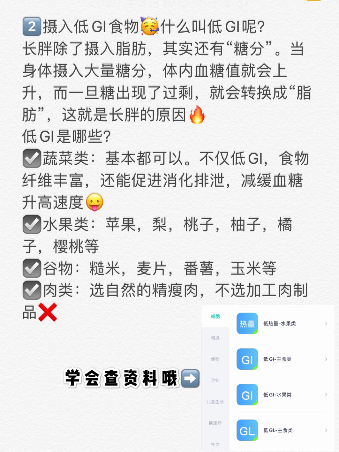 2️⃣摄入低GI食物🥳什么叫低GI呢?