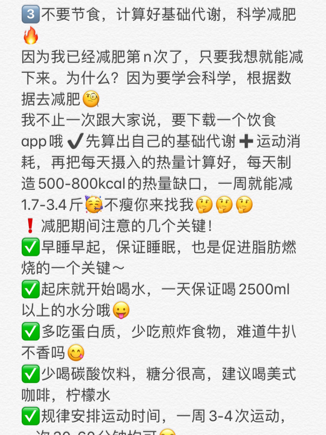 3️⃣不要节食,计算好基础代谢,科学减肥🔥