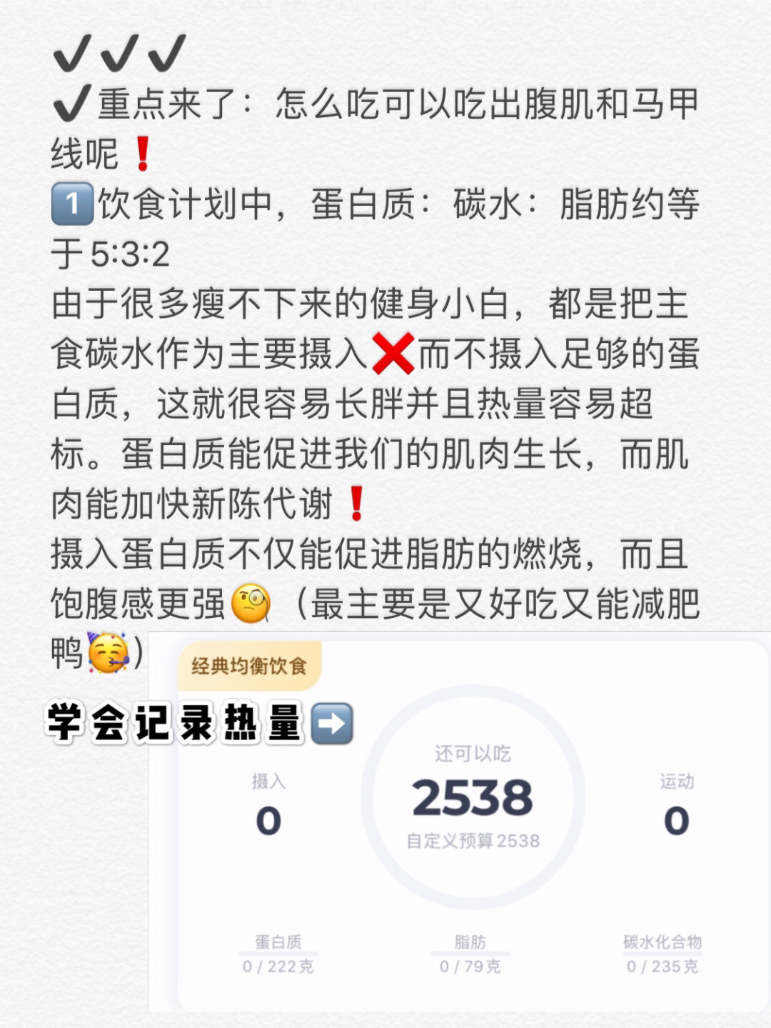 ✔️重点来了:怎么吃可以吃出腹肌和马甲线呢❗️