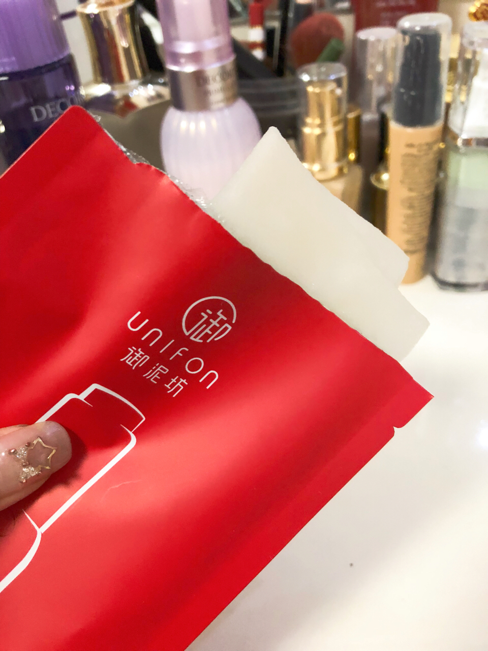 😋😋😋楼主本身是个面膜控,对面膜比较了解,其实很多美白面膜有一个最大的通病就是会拔干,滋润度一般般,后来我买了这个御泥坊美白嫩肤面膜,这款面膜的包装袋是U字形状,非常小巧可爱,带着出门旅行也方便。膜布纸是冰羽灵膜布,它本身的吸收性就特别的好,而且贴在脸上就感觉特别的柔软,很贴肌肤,清爽不黏糊,又润又透,反正真的各种舒服,不像那种蚕丝面膜粘粘的而且皱巴巴,真的形容不出来贴在脸上的感觉,还是建议小仙女们买来试一下