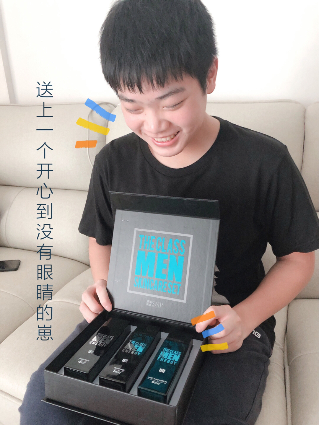 halo 我是77酱呀~ 虽然弟弟他比我小5⃣️岁~ 但是上了高中 努力学习的同时也要注意保养皮肤呀~ 而且他的皮肤hin干 自己又没有护肤的概念咯! 尤其是冬天脸上整天整天的脱皮🤨 上个月他生日我思来想去还是打算送他个礼物~ 即使从来没打算送过🤪 SNP男士套盒 包装hin大气也不用我费尽心思给他包装了哈哈哈哈~ 里面有2⃣️瓶保湿水➕1⃣️瓶保湿乳液~ 敲贴心~ 整个套盒特别重!!!瓶子hin...