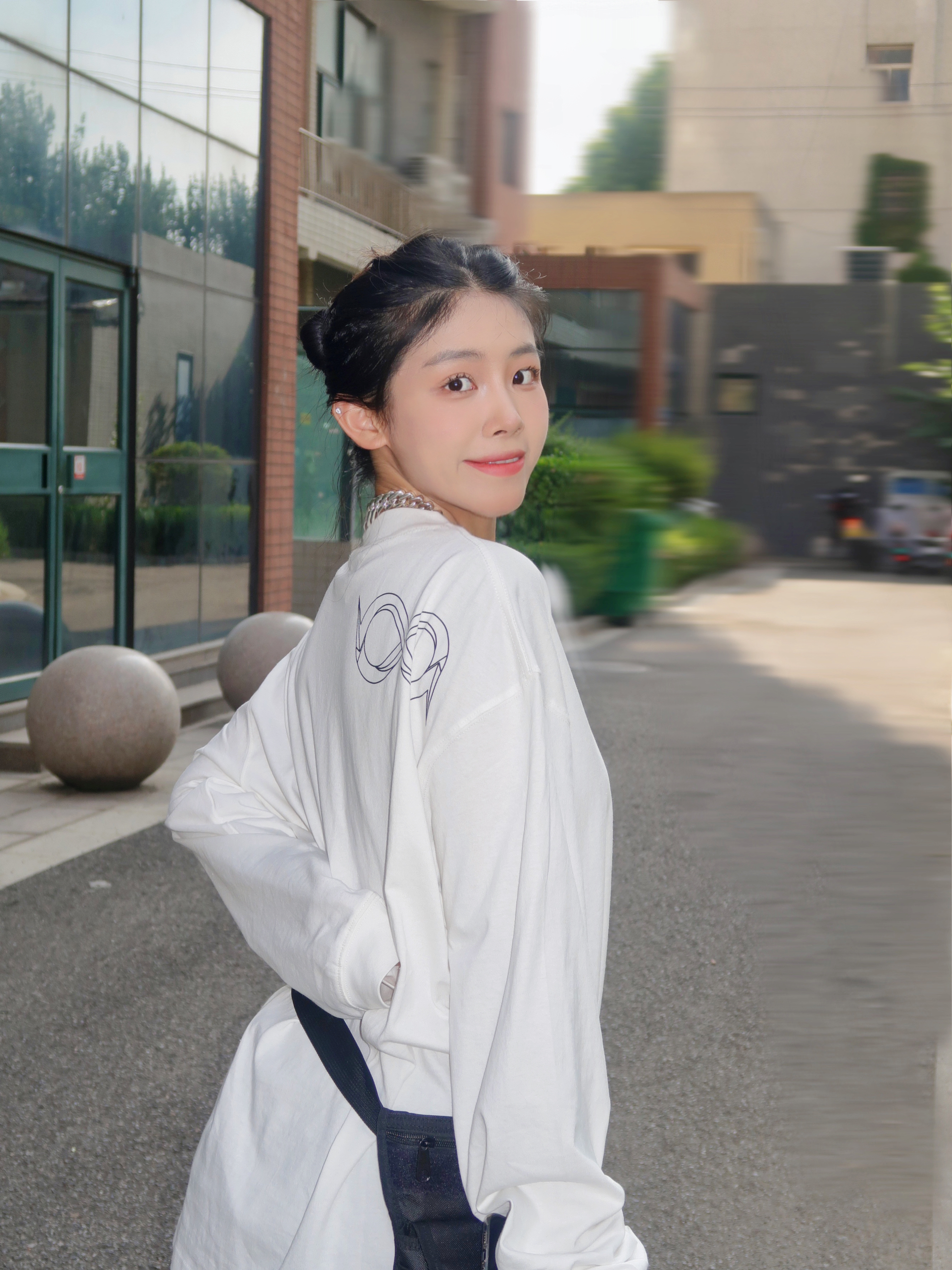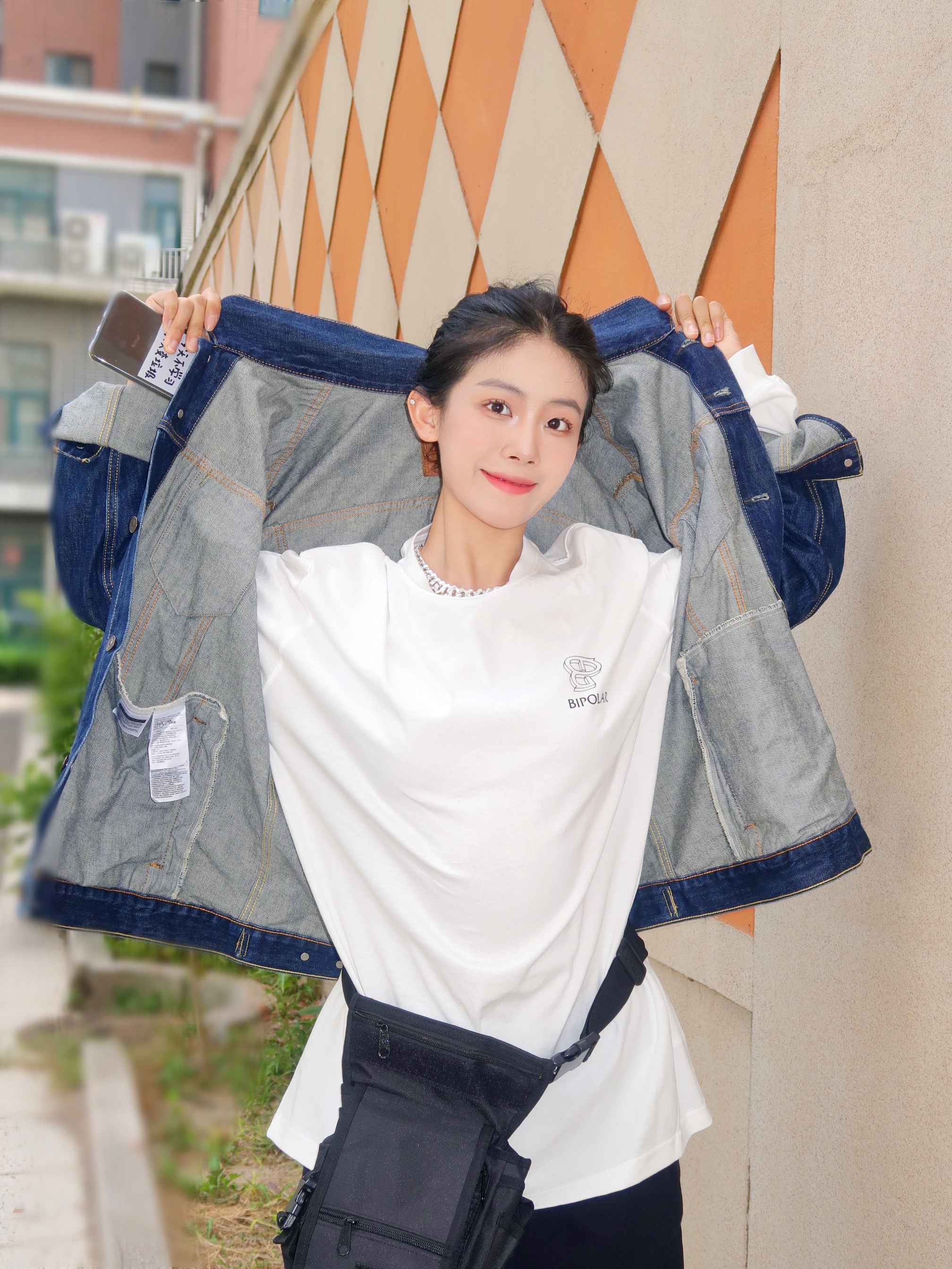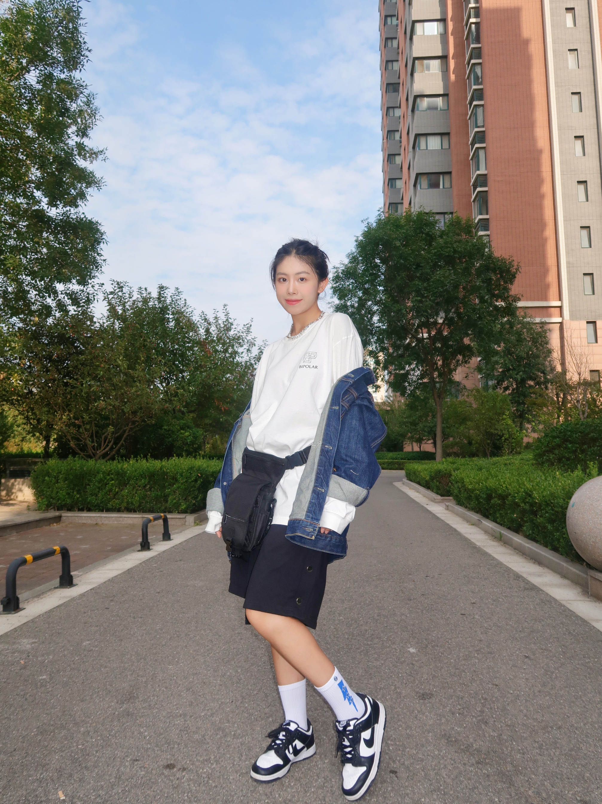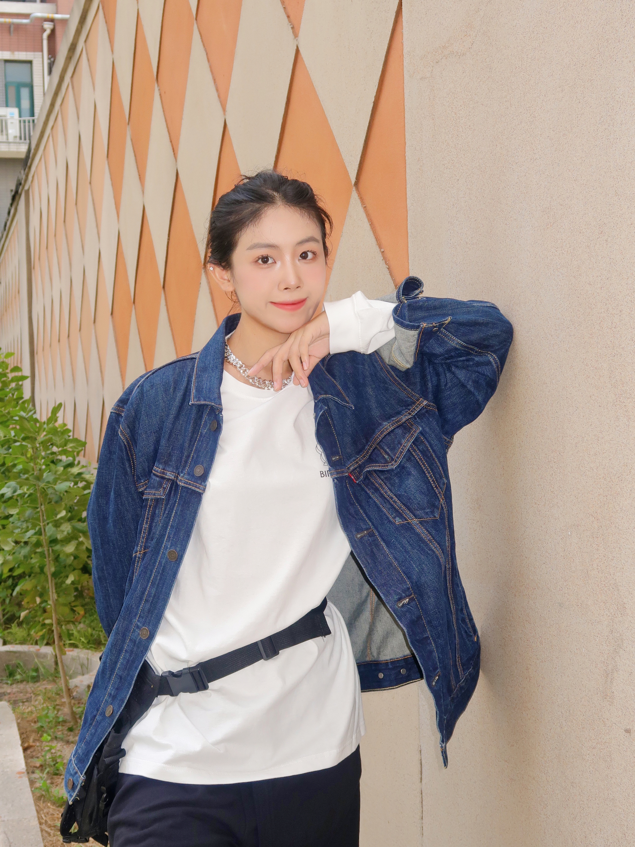 和妈妈下楼遛弯,因为降温所以披上了从男票那边顺走的牛仔服。里面加了一件打底衫简简单单的叠穿出门啦! 因为我个人必须喜欢买超大码的衣服(🤫因为显瘦!)所以在中间找了一个腰包做层次感,hhh要不然真的我就是一个没线条的树筒了🪵😣。 大家如果单穿打底衫出门一定要找一个衬衫或腰包做一下层次感,这样搭配感觉会更好哦~ 最后,哈哈哈我妈可以说是我的最爱的专属摄影师之一😘~