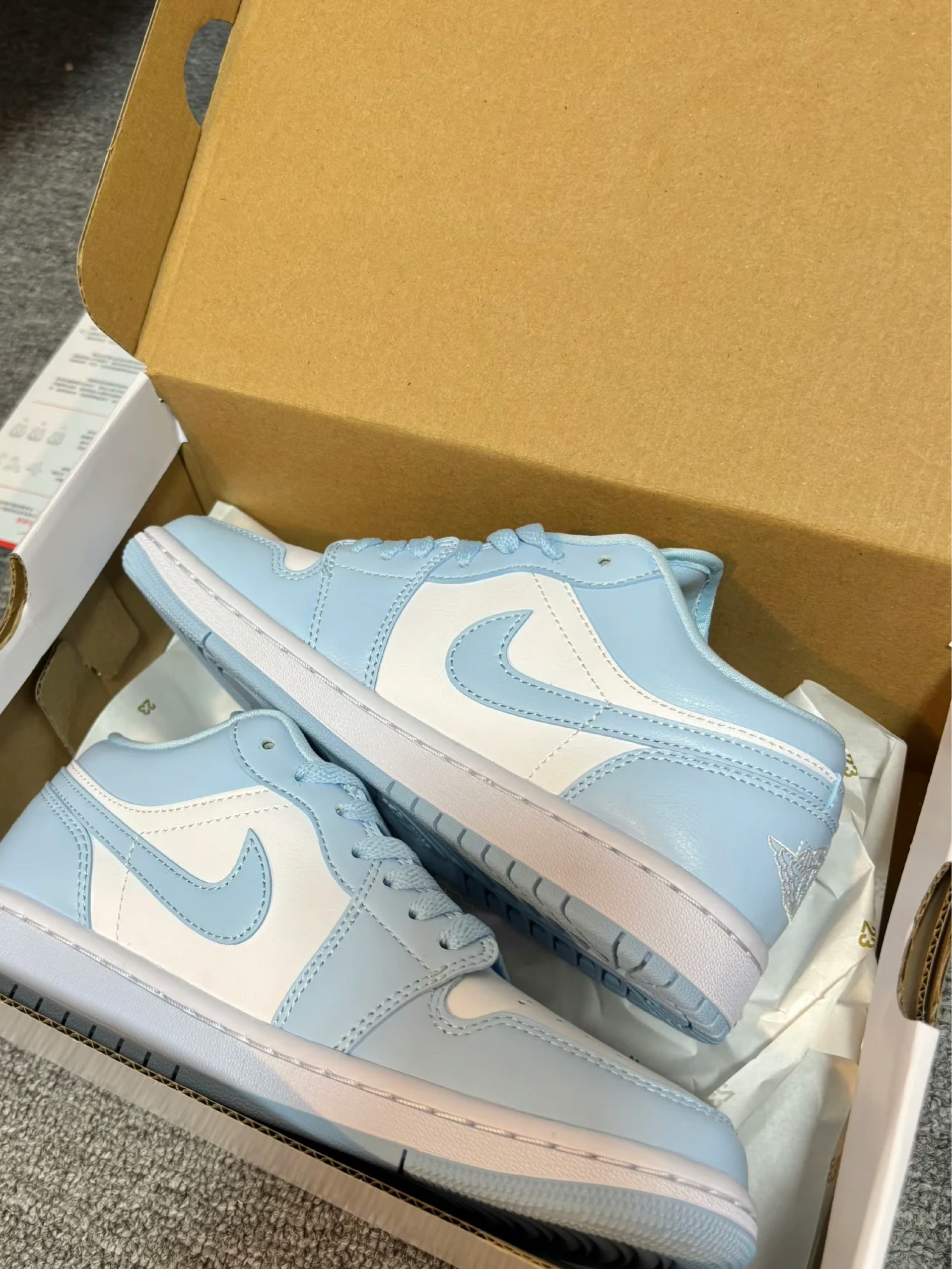 👟鞋款名称 Air Jordan 1 Low SE "Mighty Swooshers" 雾霾蓝 Air Jordan 1 Low SE "Mighty Swooshers" 绒粉钩 😆入手感受 这两双鞋绝对是最近发售的最适合情侣的鞋款,从配色到细节设计都能看出来是专门为情侣打造,或者🤔你也可以试试搭配鸳鸯。拿到手实物非常亮眼,颜值绝对好看,而且都有赠送特殊鞋带。 👀雾霾蓝 蓝色淡紫色...