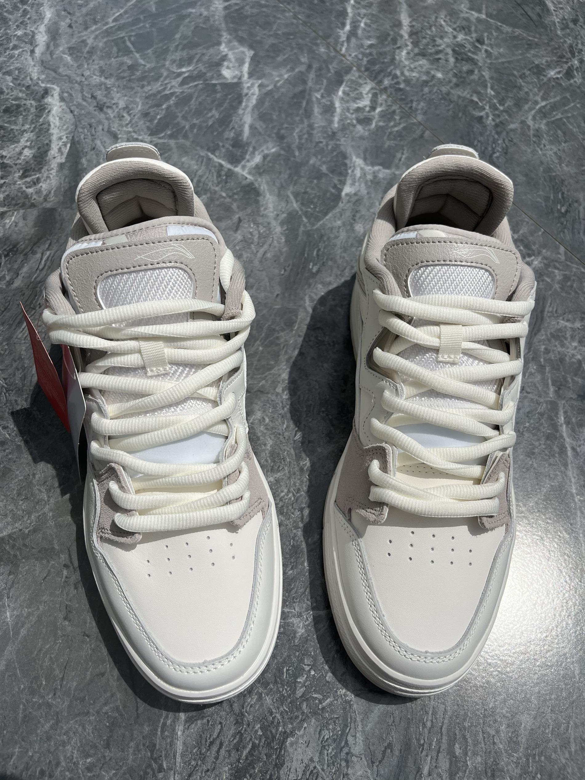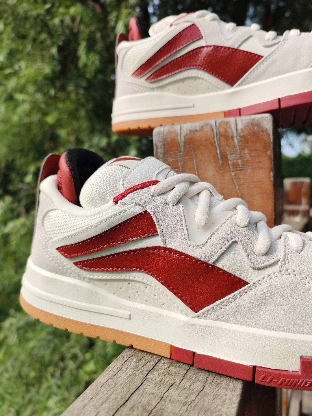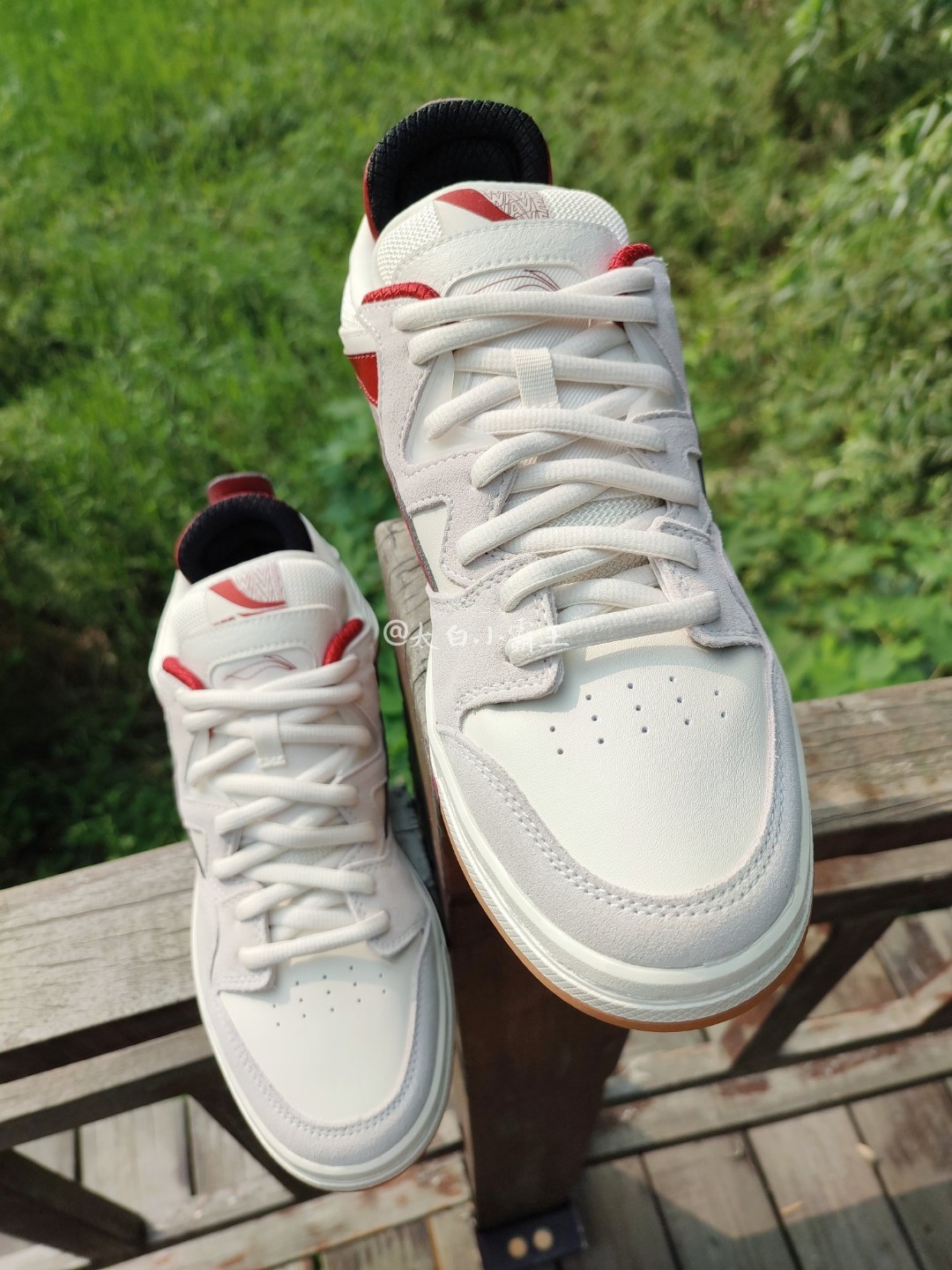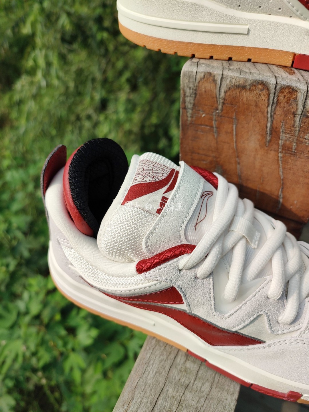 不是很理解为什么要把惟吾Pro说成Dunk平替、国产Dunk,虽然Dunk的确十分经典,设计多样,长时间发展积累了很多爱好者,但是从颜值到设计再到做工,我认为惟吾Pro丝毫不输,还有很多更甚于Dunk的地方。 这双红白生胶和白生胶一同作为惟吾Pro的大货版本进行发售售卖,线上线下并驱,这就意味着货量不断,后期可以用比较舒服的价格入手。 回归鞋子本身~ 米白色的白色鞋身,生胶底、红色的李宁Log...