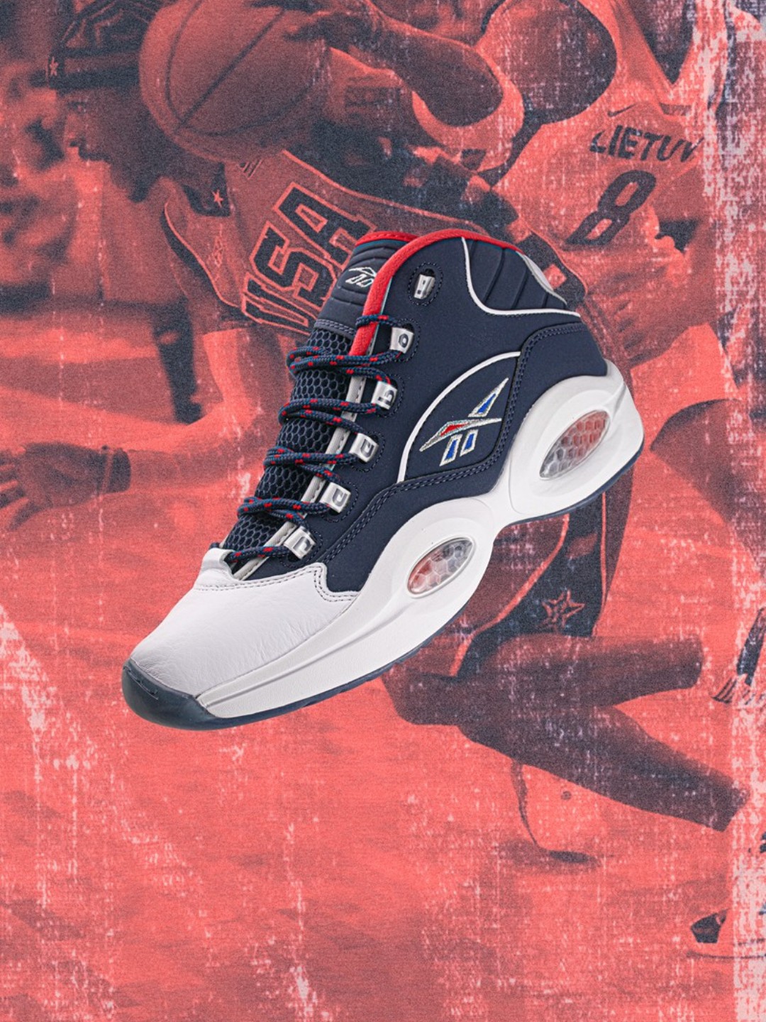 「奥运战靴」 奥运会作为体育最高殿堂,令无数运动员向往,而拥有个人奥运战靴的更是难得的荣誉。 为纪念艾弗森生涯唯一一次奥运会之旅,Reebok 带来全新配色 Question Mid,不仅有着原汁原味的梦之队装扮,鞋身的经典元素也悄悄发生了改变! 鞋面大面积采用海军蓝麂皮打造,质感柔软细腻。 鞋头及后跟使用白色皮革包覆,细节辅以红色勾勒,视觉上完美还原 “梦六队” 的球衣配色。 特别之处在于,后...