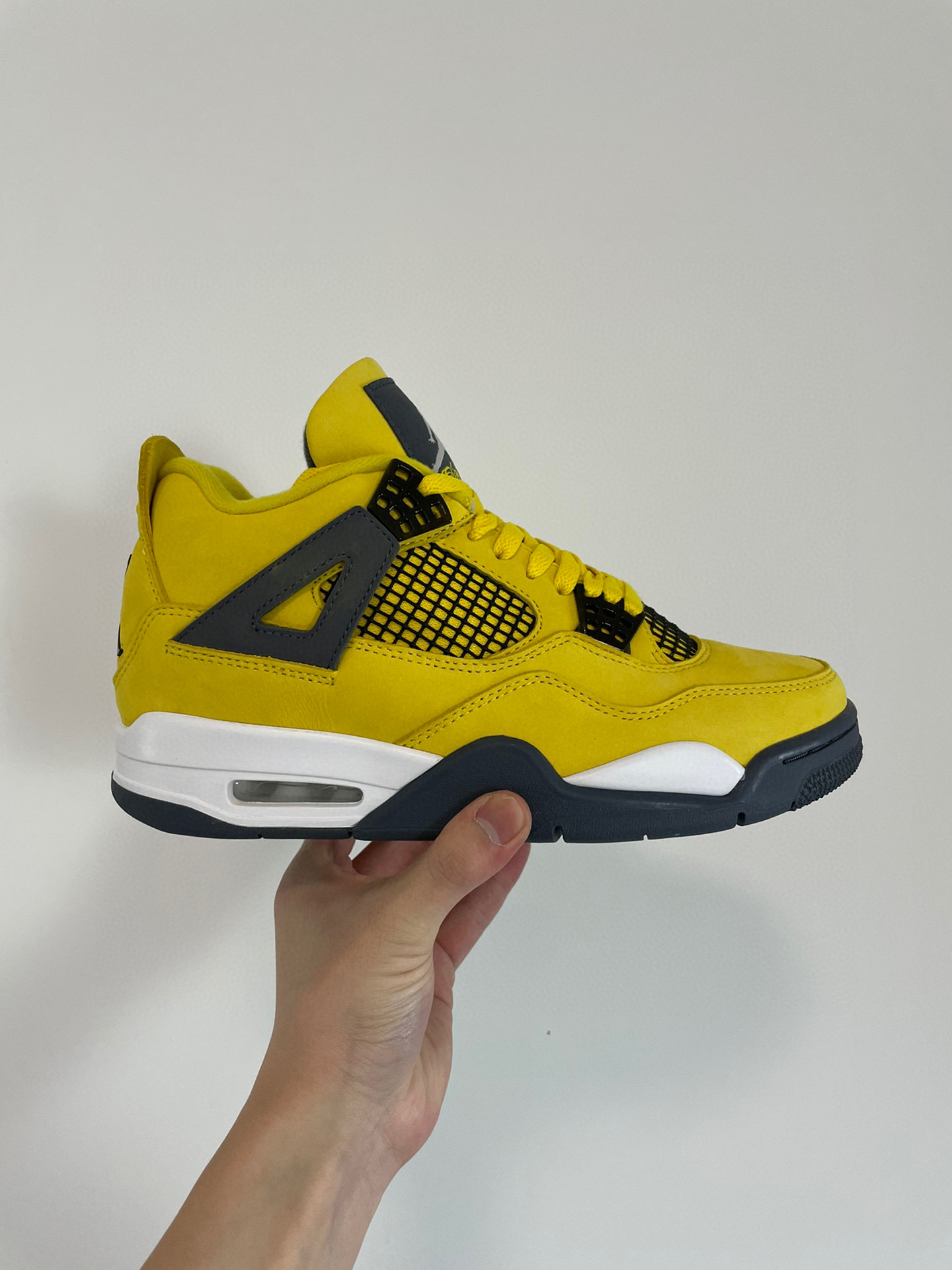这双近期复刻的Aj4“电母”,当年也算是一代经典,亮黄色皮质鞋身搭配黑色的撞色设计,不仅质感满满而且相当醒目,鞋舌、后跟、鞋底以及鞋盒都有飞人logo元素,绒毛内衬也凸显了这双鞋的品质。 整体来说算是一双诚意满满的复刻,AJ4系列的复刻也都会有不错的市场反应。但这双可能是太过于个性抑或不耐脏的缘故,现在已经破发,价格合适,喜欢的可以入手。
