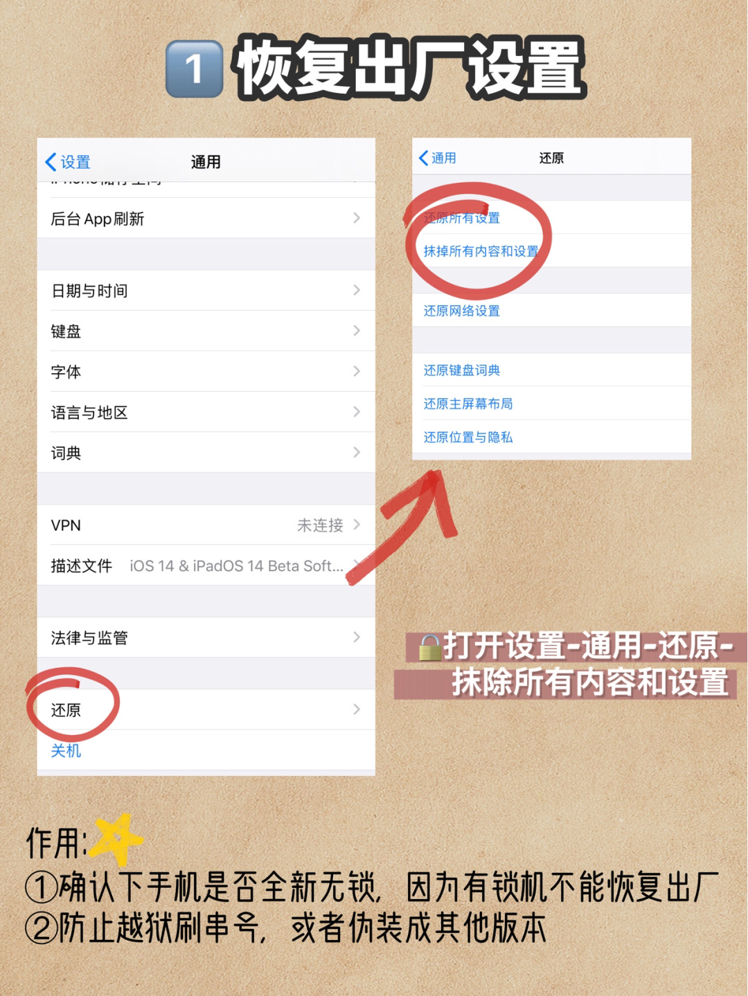💗可以先打开设置-通用-还原-抹除所有内容和设置。