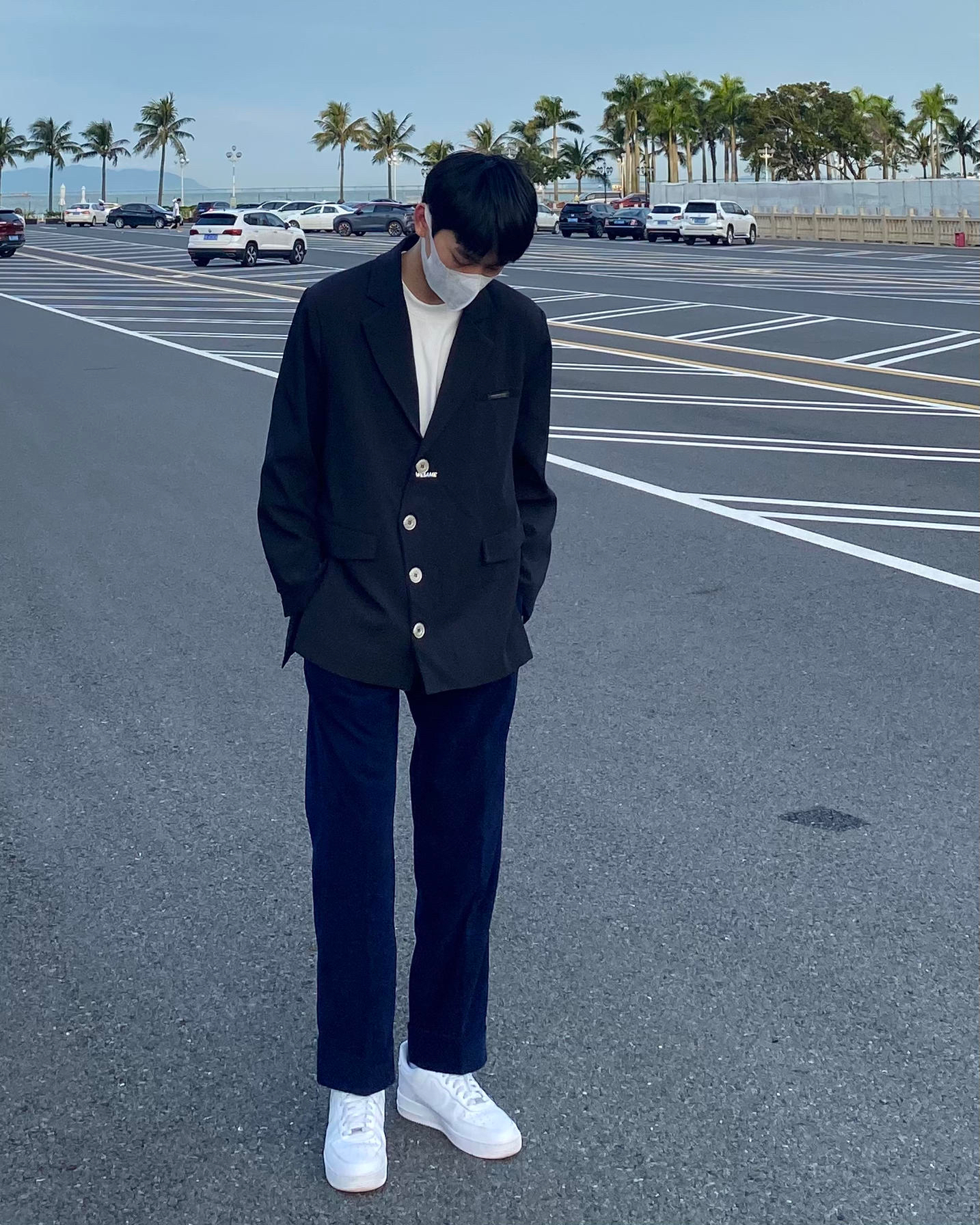 哈喽!前几期答应大伙的韩系轻熟LOOK来了🧞♂️ 👔WESAME ⌚️LANZOOM 👖酷意欧旗舰店 西装独特的裁剪设计很特别,让整体不过于商务,大面积的黑色特有高级感🆙 裤子是九分裤版型,值得一提的是灯芯绒面料,复古的感觉依旧经典 整体穿搭以韩风为主,干净清爽,通勤,日常场合都可以“抄作业”