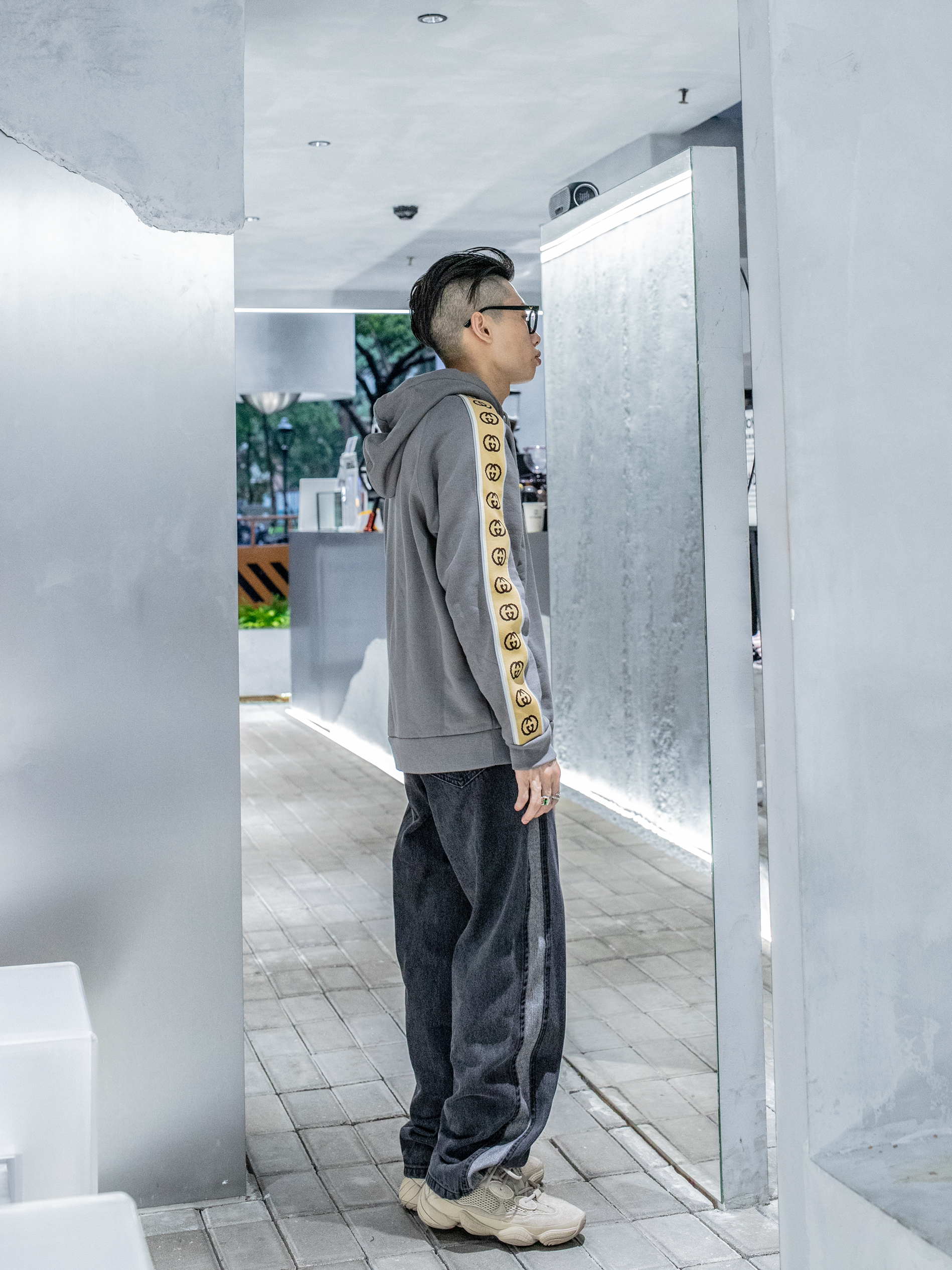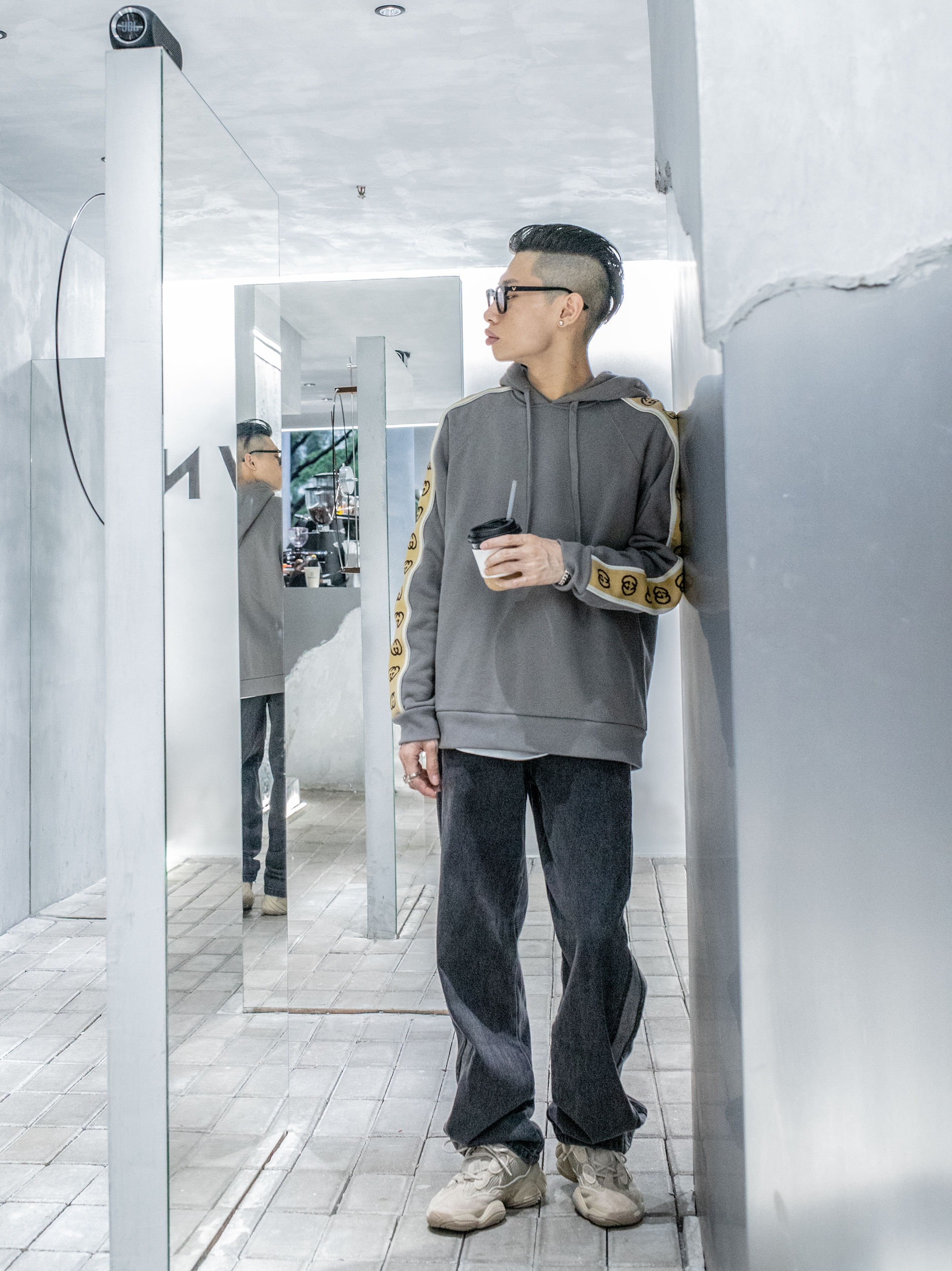 今个秋冬运动服也是一个潮流趋势,卫衣袖子加上飘带设计运动风满满,水泥灰的场景加上水泥灰的卫衣搭上黑色牛仔裤复古味儿十足~🌪🌪 搭上球鞋选择属于沙漠色系的褐色YZ500显得很有秋意#🏜️💫 凉快的温度喝上一杯暖暖咖啡,瞬间被和谐了~😎🍻 👓:GENTLE MONSTER 👔:GUCCI 👖:M5IS 👟:YEEZY 500褐色