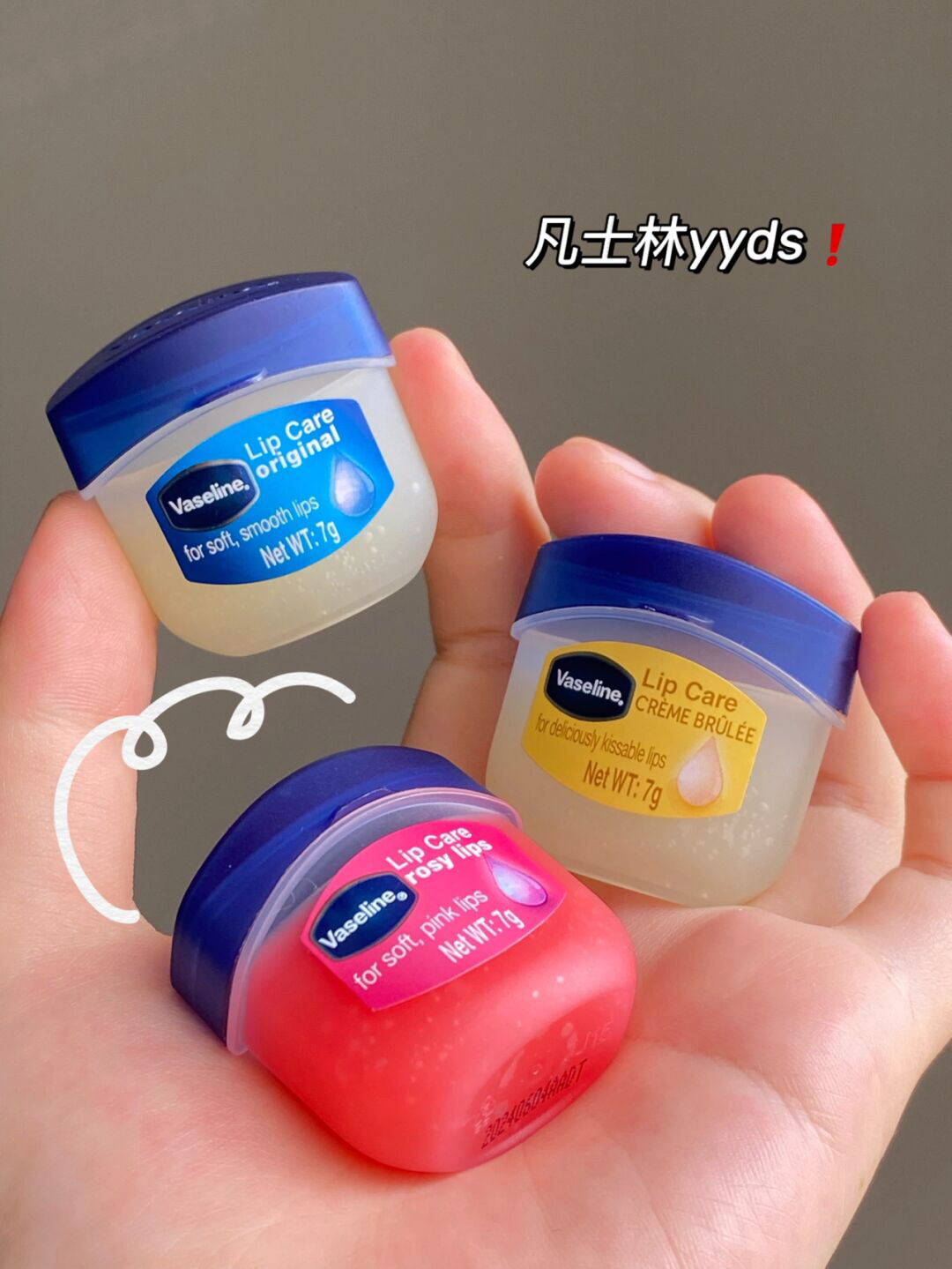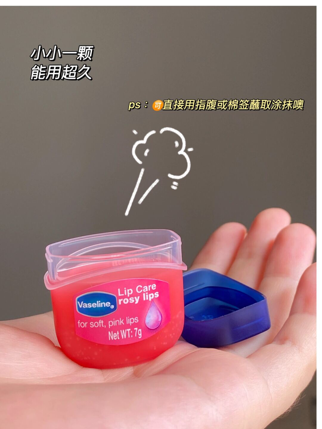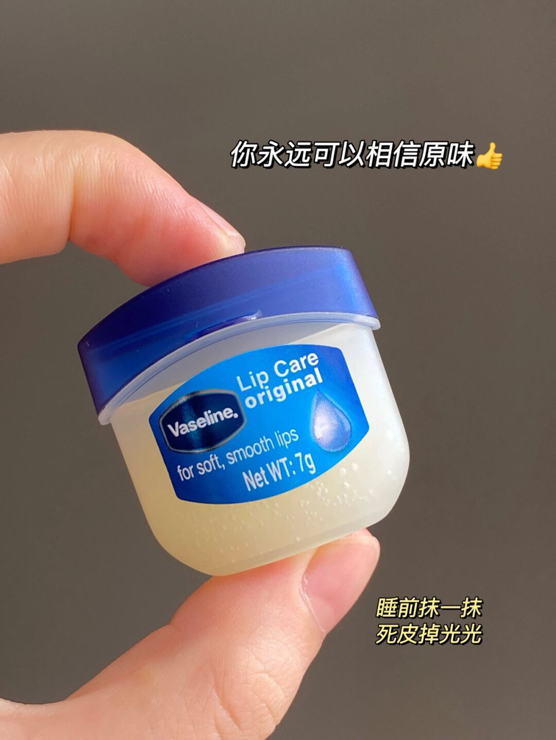 凡士林润唇膏yyds! 从高中以来就一直在用 目前已回购了n个💪 晚上睡前涂厚厚一层 早起用洗脸巾擦嘴👄 死皮全都掉光光啦 别看它小小一颗 真的能用很久 🈶️三个味道 原味 布丁🍮和玫瑰 ps:推荐第一次购买的plmm选择原味噢好物分享
