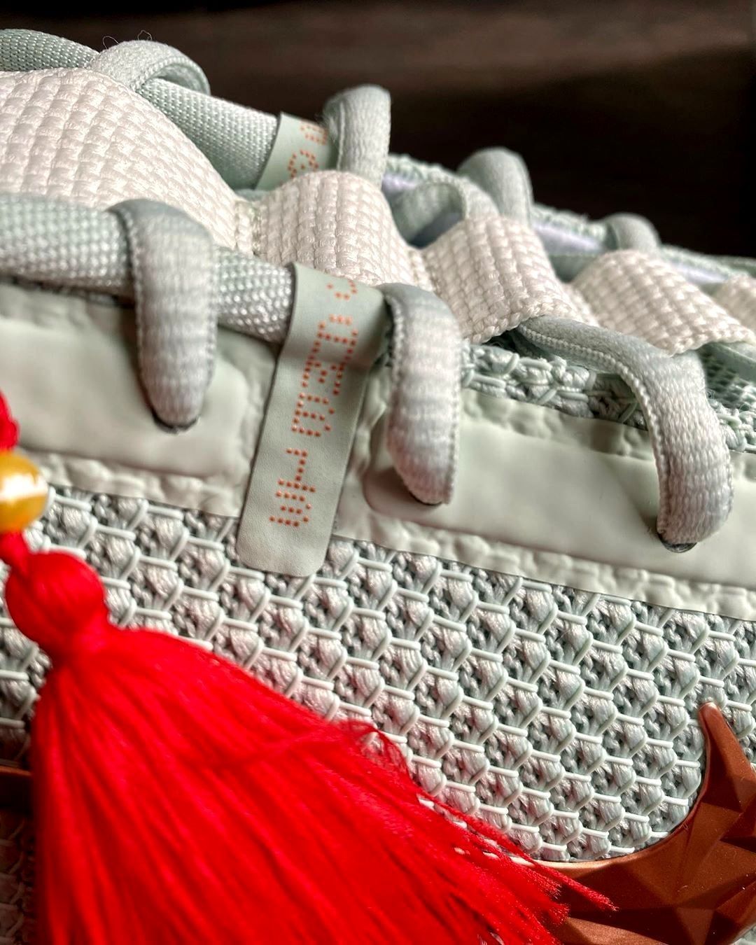 怎么样大家觉得这个配色的使节13好看么,我自己真的是非常非常喜欢,包括这种流线型的鞋身,一点力量感都没有,甚至说它是詹姆斯系列的球鞋都很违和。再加上这个中国玉的配色,当时看谍照的时候就一见钟情了。 不过到手之后仔细端详了半天,造型确实有点神似Freak 2? 包括流线型的造型,前后分离的大底,确实神似的有点多了。 这双鞋的鞋面使用了一体式的硬质编织材料,前掌鞋头的位置有一层网格状热熔的涂层作...