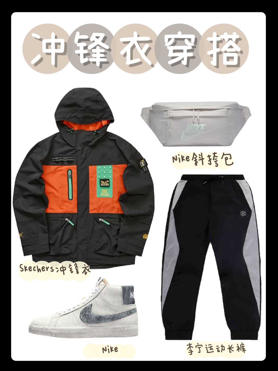 现在的冲锋衣设计风格越来越好看了,在明星的私服装扮中也是屡屡出现。赶快告别冲锋衣沉重土气印象,今天就来跟小编穿搭示范,挡风更时髦~ 海贼王的联名让多少男孩女孩心动~宽松的绿色冲锋衣是既带有惬意休闲美,同时也蕴含着洒脱动感美,给人一种眼前一亮的视觉冲击感。下身搭配休闲运动裤恰到好处,鞋子选择了同色系帆布鞋视觉效果会更好哦