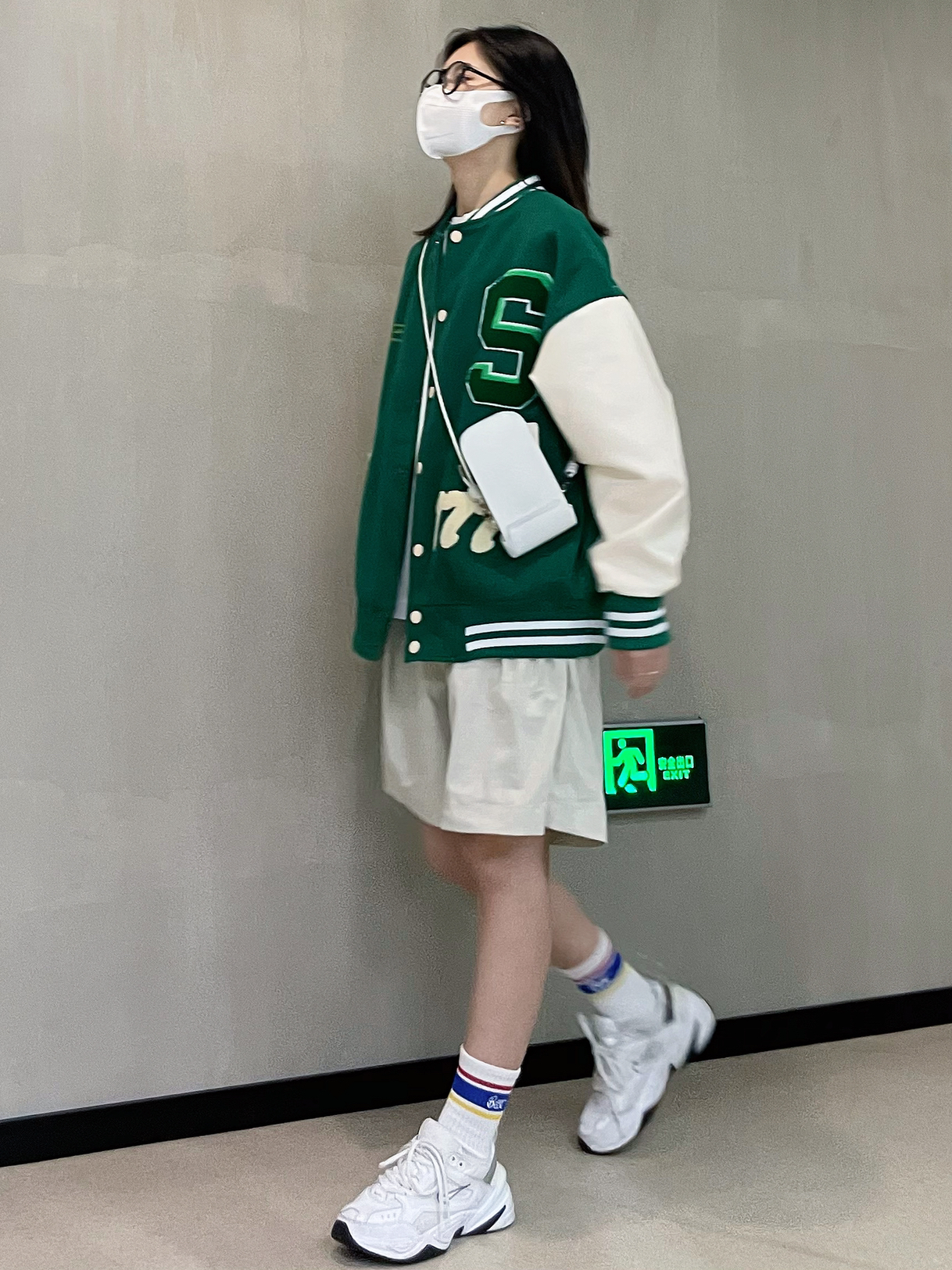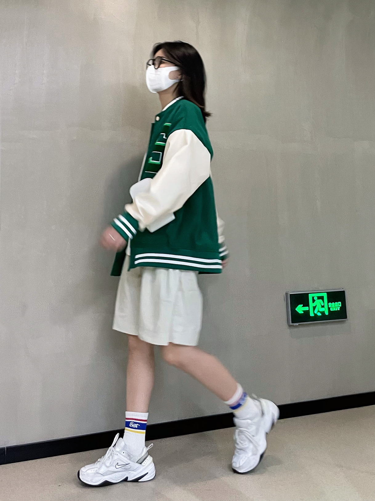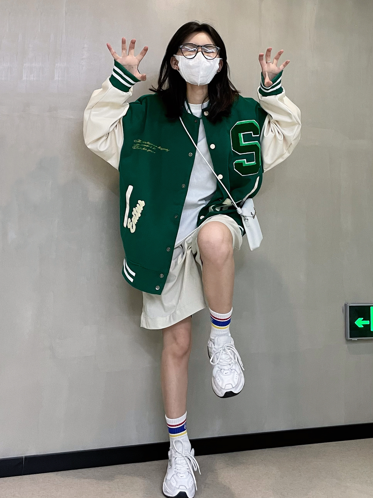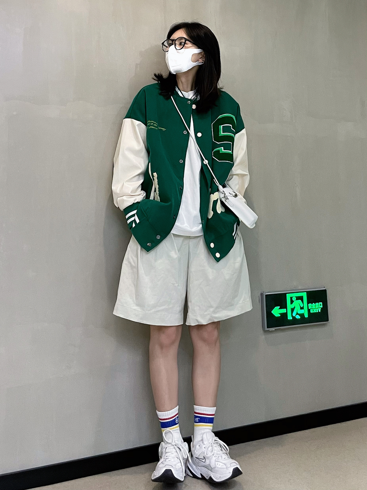 棒球服真的是oversize选手最爱单品了吧? 棒球服:失眠飞行馆(颜色真滴好复古,低饱和的墨绿色~就是秋天的气息啊记得一定要大一码哦![doge]) 裤子:银河汽水(可能大家真的会觉得怎么又是上长下短!真的有人会这样穿出门吗?但是真的是我本人没错了 我认为穿搭不分季节,可能是我觉得好看更重要典型的要风度不要温度怕冷的bb可以试一下搭白色的长裤 我试过!也好看) ~