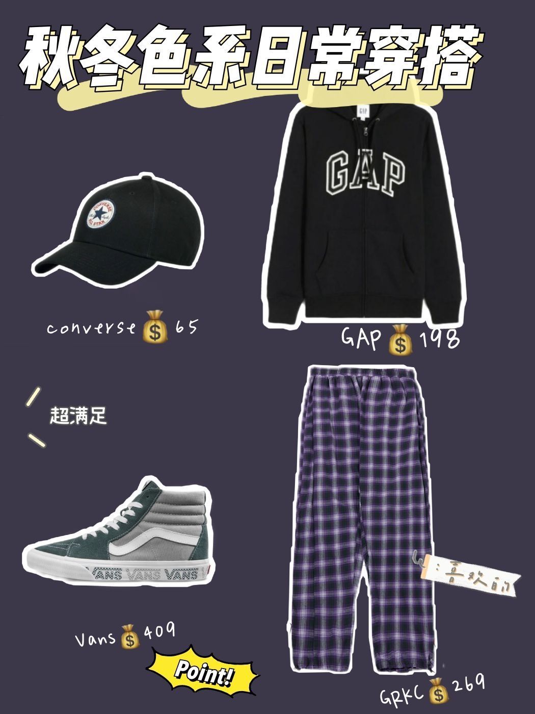 这几套的配色真是绝绝子🔥🔥姐妹们赶紧看过来拯救你纠结的心❤️❤️ LOOK1 【鸭舌帽+卫衣+阔腿裤+运动鞋】 这一套是街头嘻哈风的穿搭🎩 格子休闲裤真的百搭哇⚡ LOOK2 【鸭舌帽+卫衣+阔腿裤+高帮运动鞋】 整体深色系的穿搭🌊 gap卫衣简单新潮💘搭配花格子阔腿裤非常有高级感🕶️ LOOK3 【鸭舌帽+连帽卫衣+阔腿裤+高帮运动鞋】 这一套是比较新潮又保暖实用的穿搭🌠 很难驾驭的深红色...