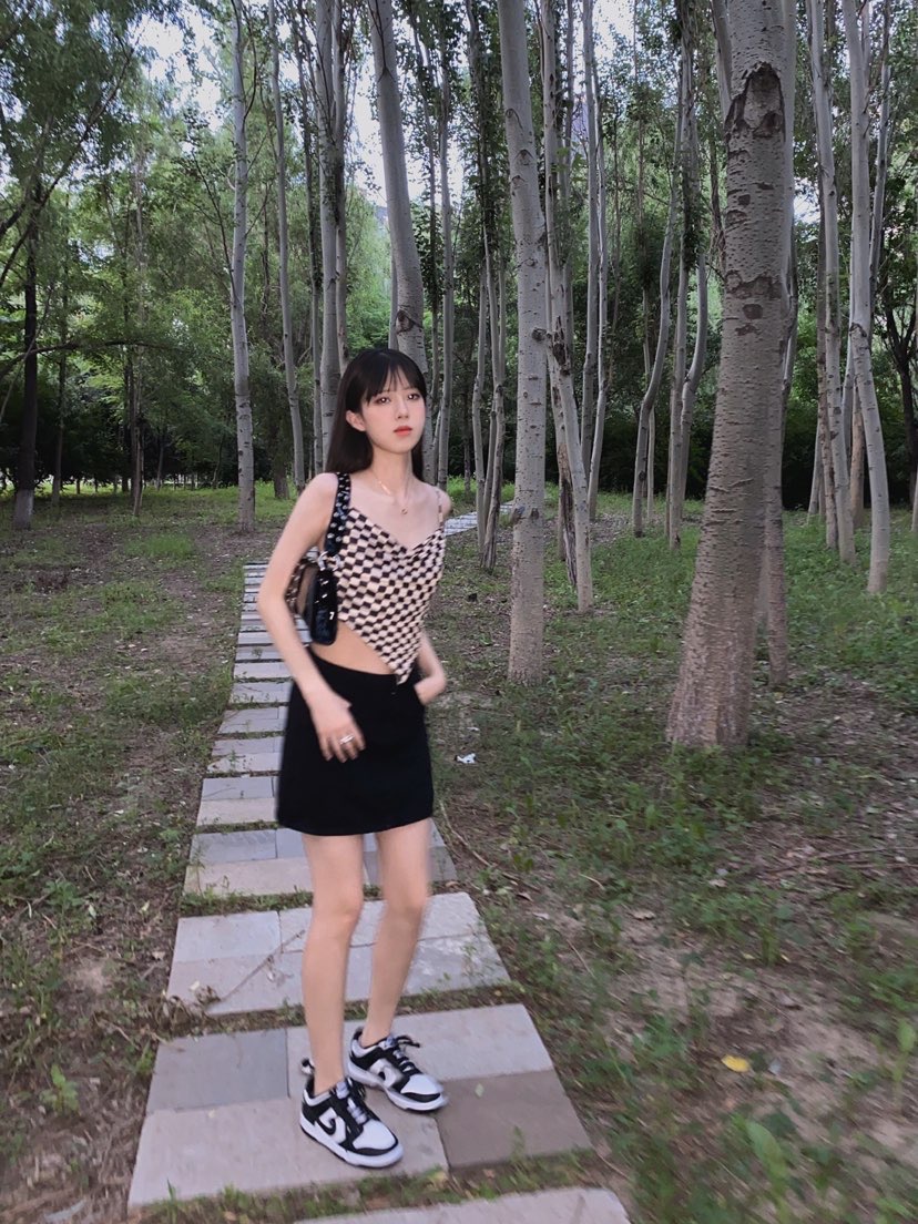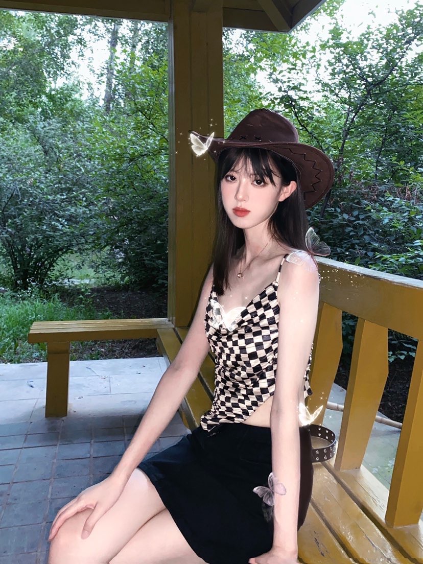 这个码打的也太仙了!! 家人们牛仔帽太有感觉了、戴上帽子就是有内味了 棋盘格上衣吊带和裙子都是黑色的 很和谐 这个帽子还是我小学?去内蒙玩的时候买的 在家闲置很久终于派上用场了👍🏼 衣服:#WooHa 裙子:Mrslady 包包:#lost in echo 项链:#DanielWellington 戒指:#theRubz 鞋子:#Nike