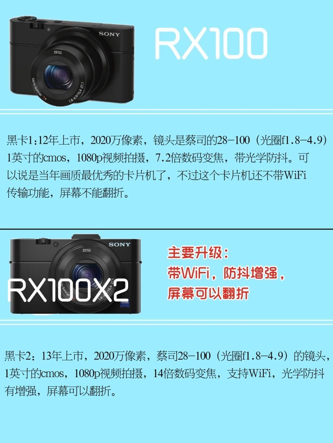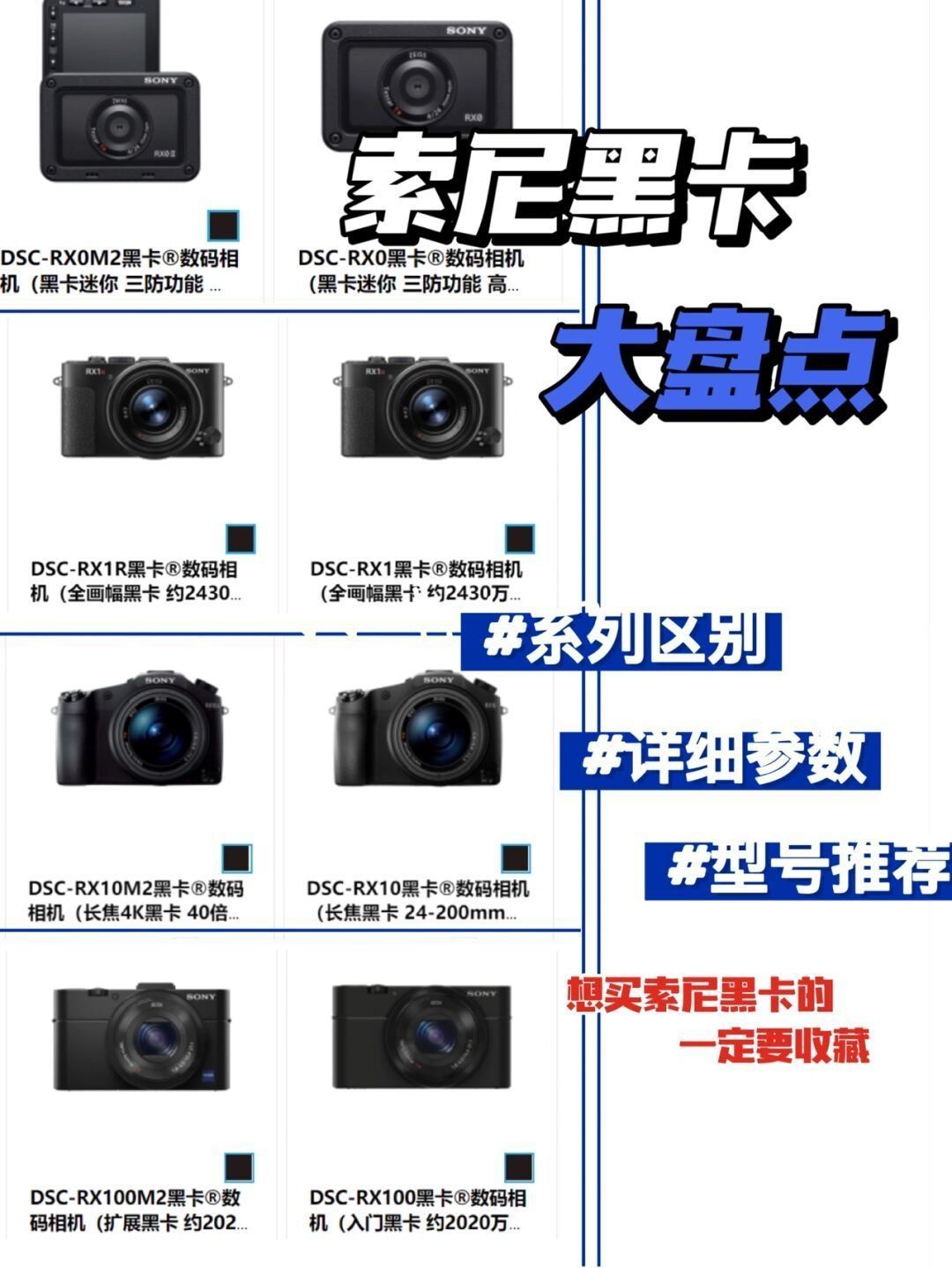 相信只要了解索尼的,都听过索尼黑卡吧!可能也搞不懂为啥一个小小的卡片机,却卖那么贵! 🟡索尼的黑卡系列主要分为RX0,RX10,RX100还有全画幅黑卡RX1。 1️⃣RX0系列主要是防水相机,运动相机,针对有特殊需求的用户群体。 2️⃣RX10是超长焦数码相机,适合拍摄远景,和佳能SX系列是一样的,也可以称为摄月神器,焦段最长600mm 3️⃣RX100系列就是最热销的一个系列,主做便携...