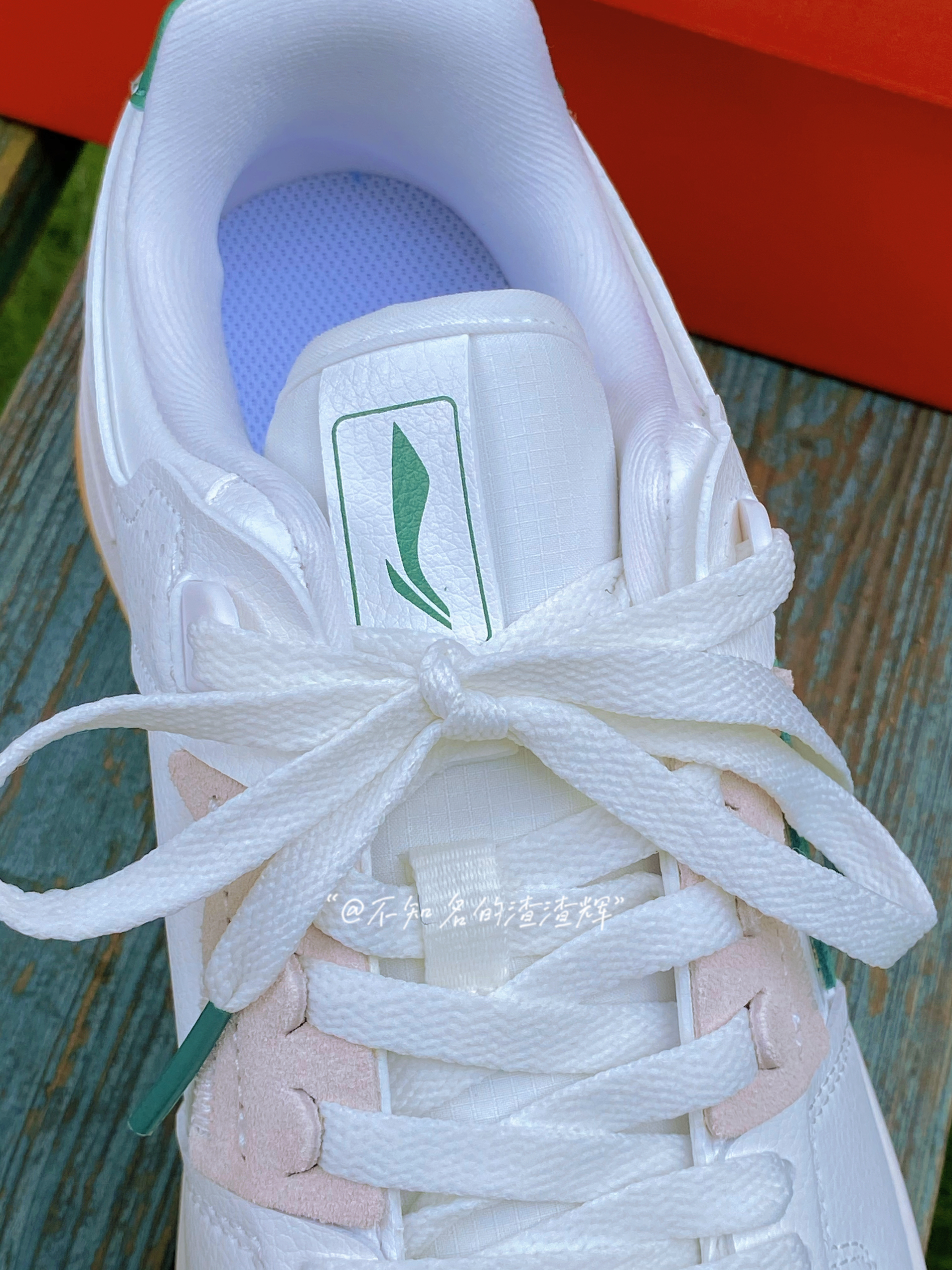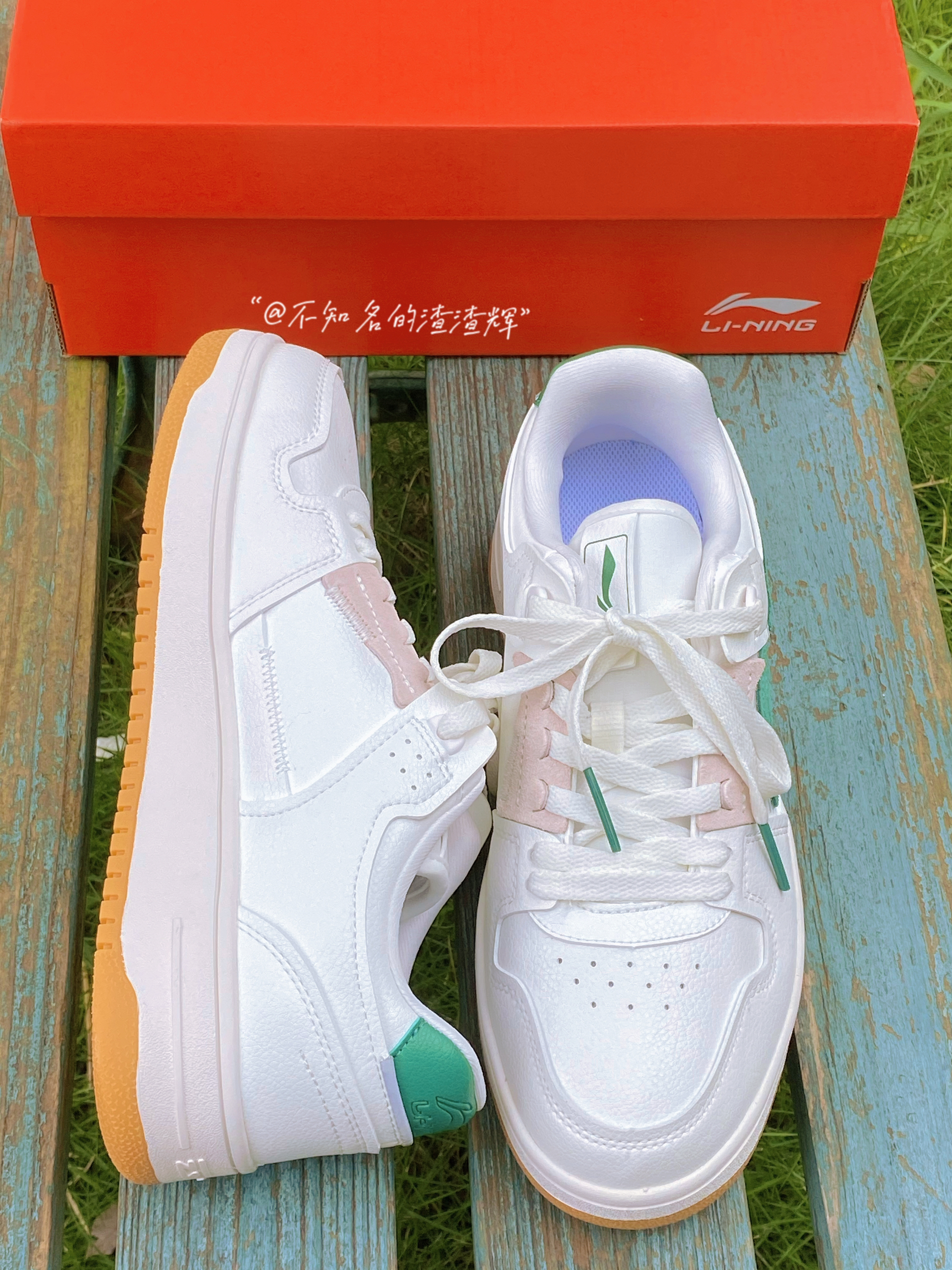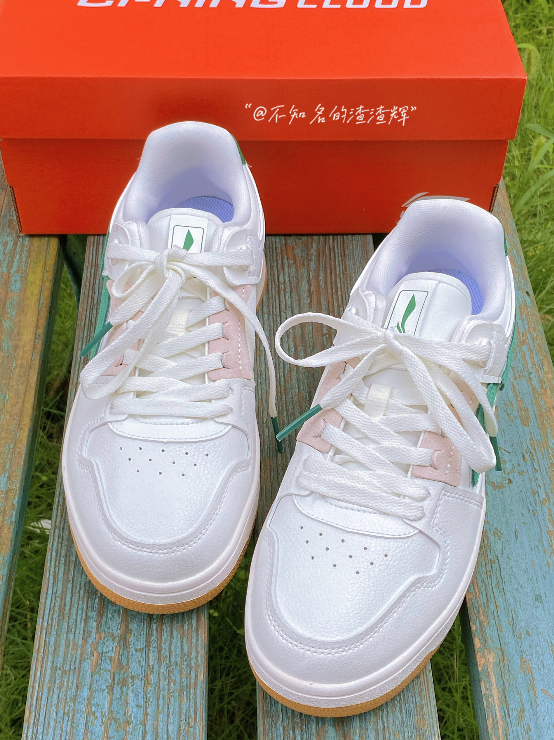 💫:LiNing 李宁 天迹 经典休闲鞋 白绿粉 💫:这双鞋子鞋身整体采用了白色,鞋带穿孔有着灰色的翻毛皮,鞋身有着绿色的李宁Logo,质感十足,鞋舌和后跟也都我着绿色李宁Logo,鞋身整体采用了解构和缝线设计,设计风格很棒,鞋底采用了橡胶底具有良好的抓地力,鞋底采用了李宁云缓震科技,大大提升了鞋子的运动表现 💫:特别百搭的一款小板鞋,有着超高的颜值和舒适的脚感 💫:尺码推荐:正常尺码