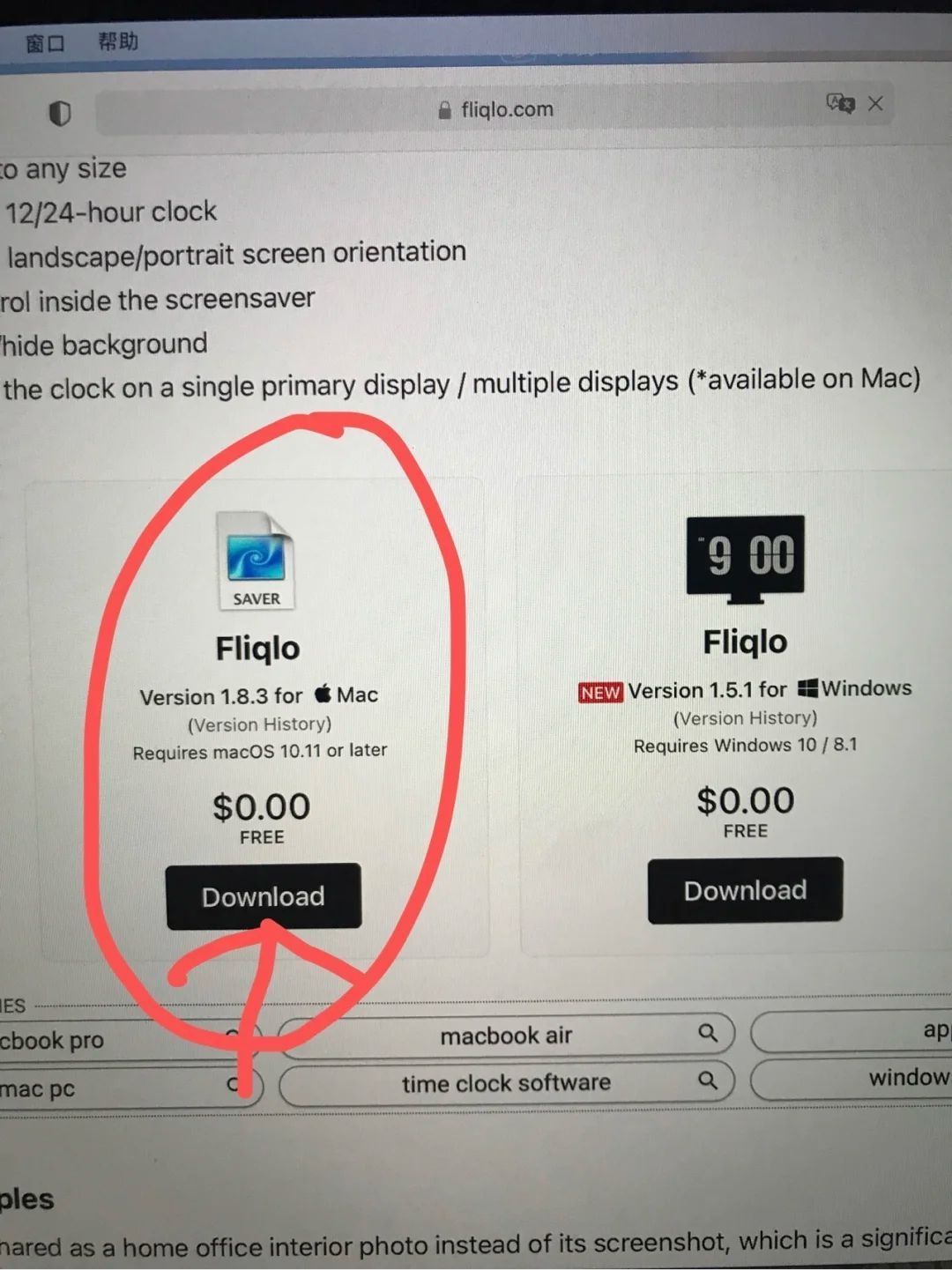 😘😘😘这个超级简单 😍1.浏览器搜索fliqlo进入这个网址可能遇到的问题:网址进不去,就刷新一下网页 😁2.点击(图二)画红色标记的地方 😃3.第二步操作以后下拉页面,看(图三),苹果电脑选左边 😉4.点击下载以后,在(图四)标记的地方打开下载好的文件(不要在访达里点,我在访达里没找到) ☺️5.点击SAVER那个图标(图五)就会直接跳转到屏幕保护程序上了,选择屏幕时钟就可以啦,切记一定不要勾选...