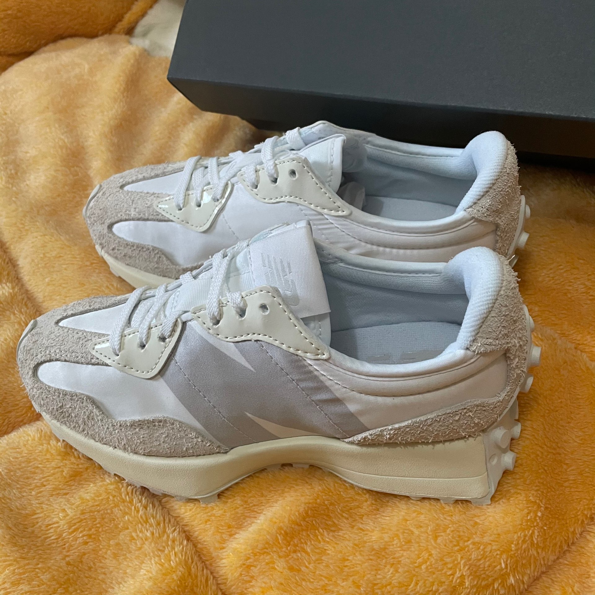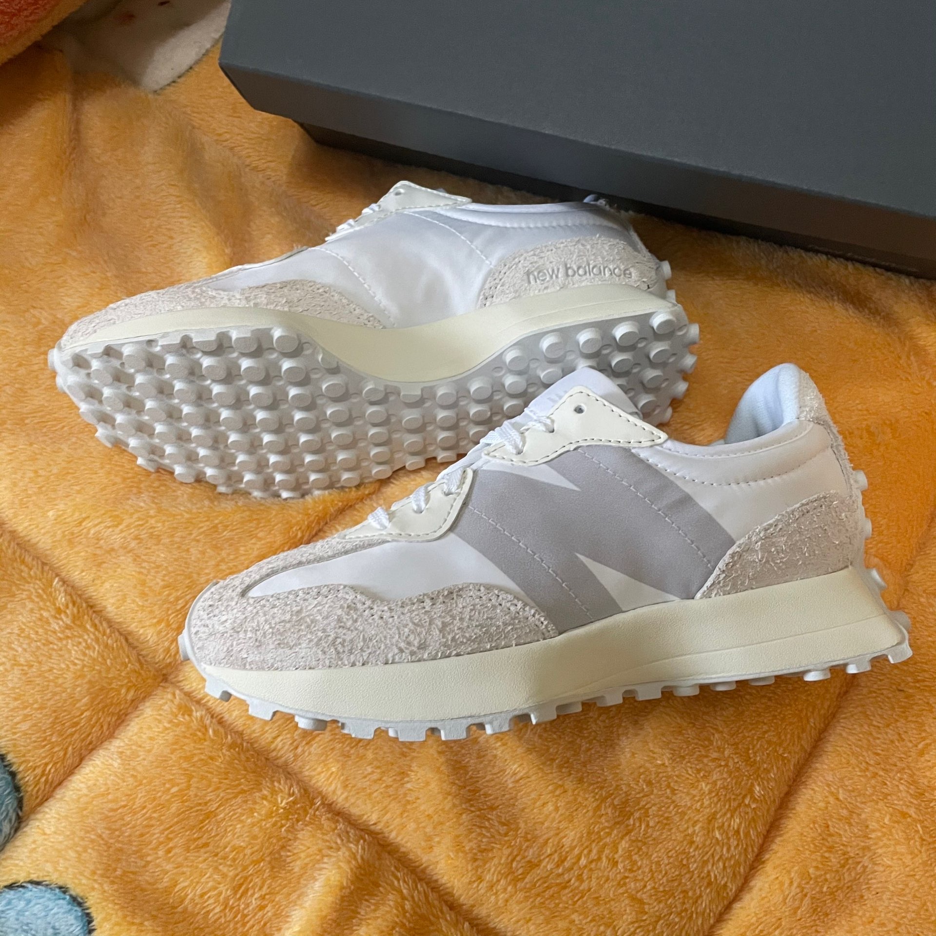 本篇笔记关联了【IU同款】 New Balance 327 跑鞋 舒适复古防滑耐磨休闲透气减震拼接运动防水织物慢跑圆头 浅灰/米白等商品,为用户提供真实的使用体验和购买参考。